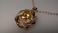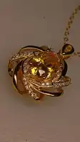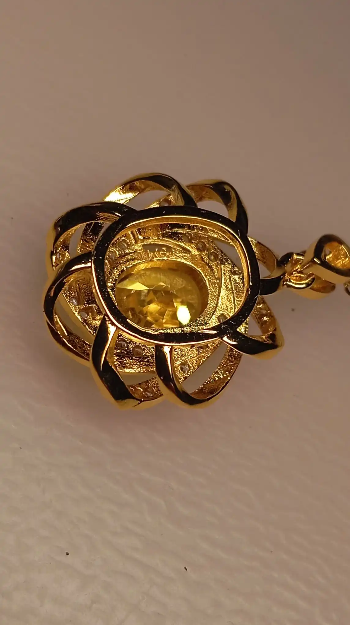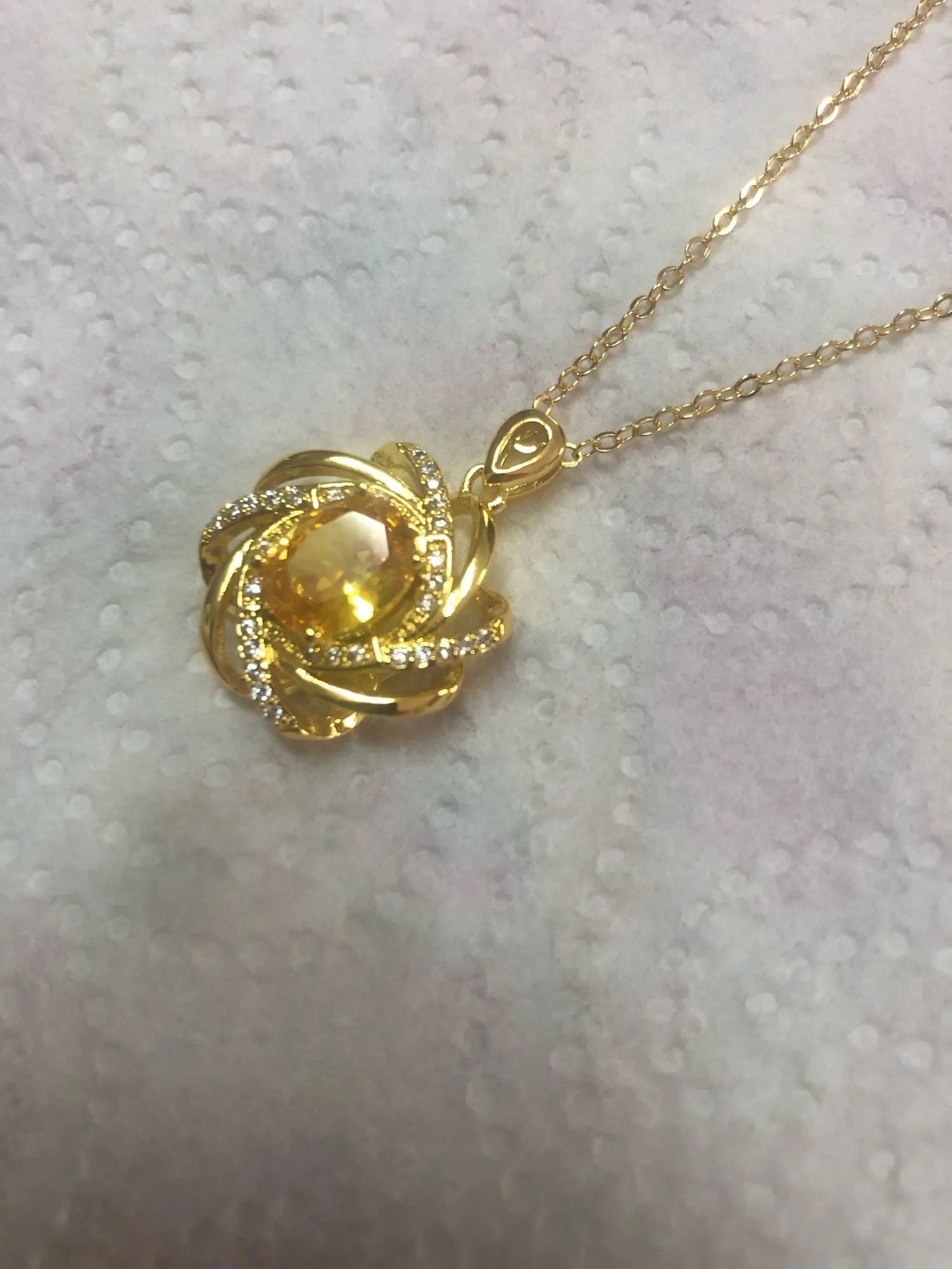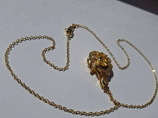 Thank you to the Seller for the quick shipment and safe packaging. The stone is clean from inclusions, effectively refracts sunlight, the yellow color of the stone and the gold color of the pendant and necklace blend beautifully. Wearing it wonderfully adds positive energy.