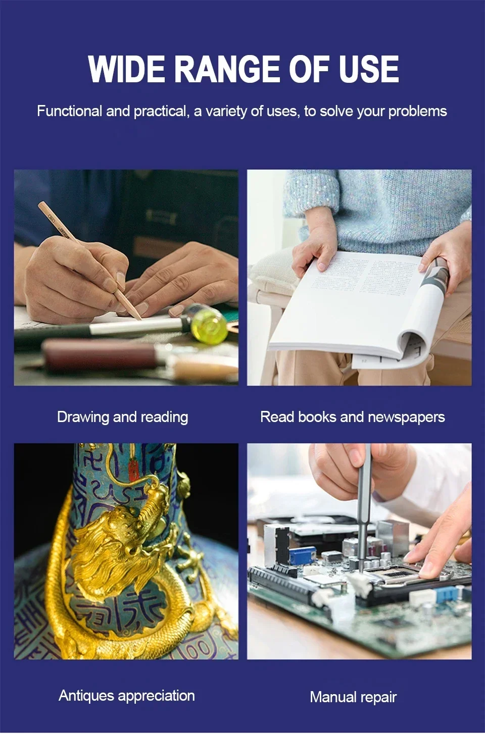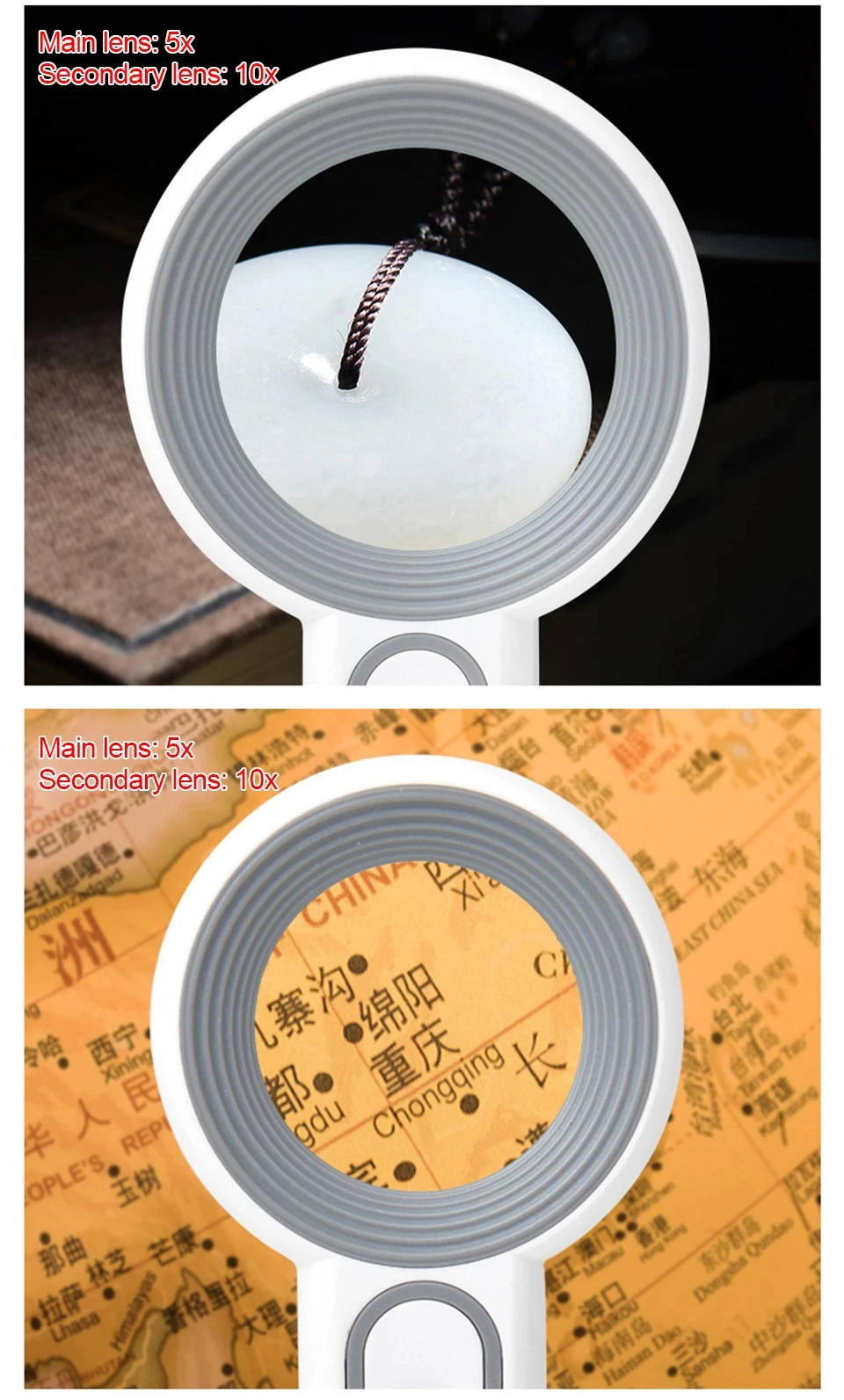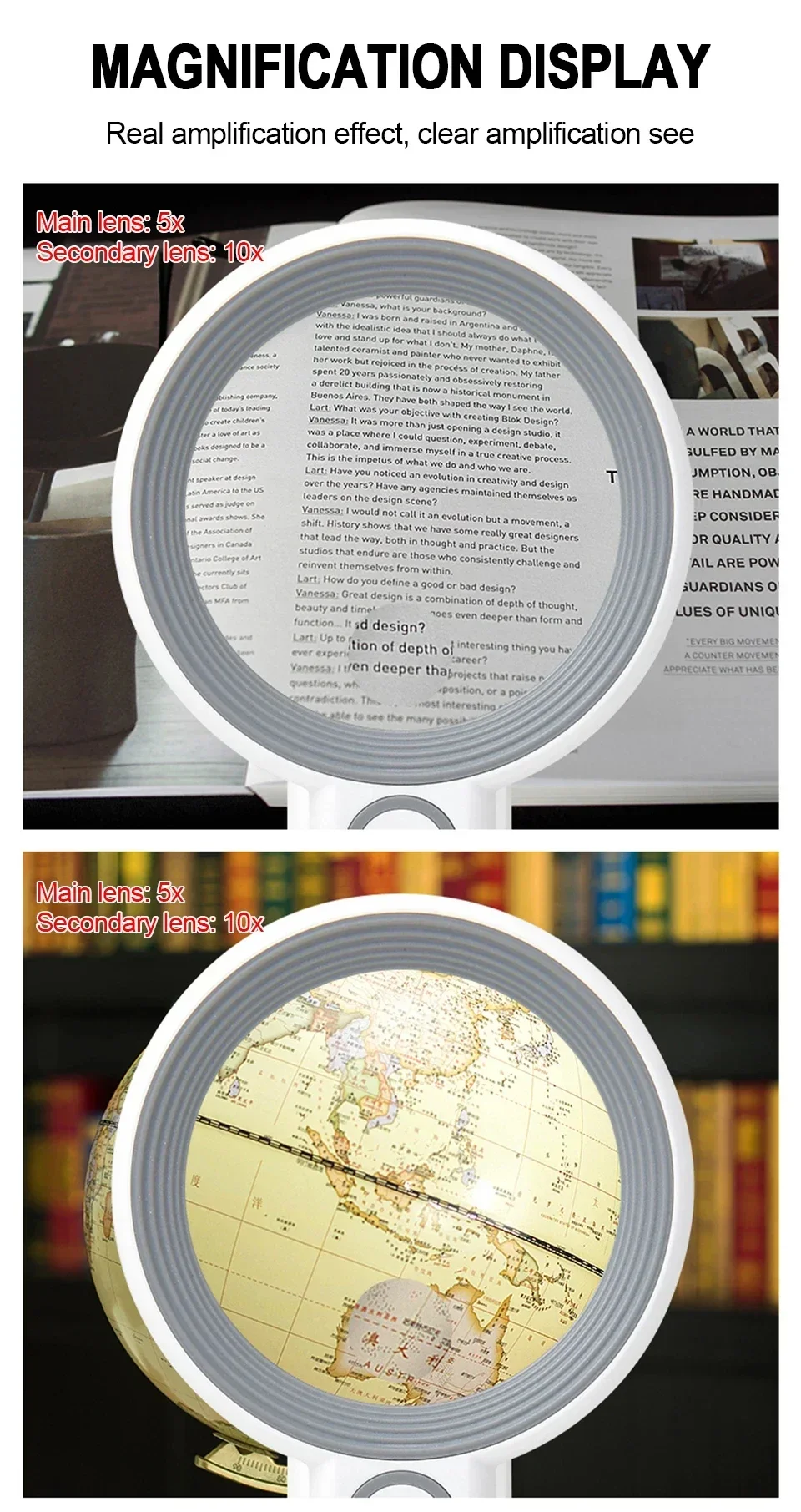 4. Multiple Uses: Illuminated lighted magnifier can be used to read newspapers, documents, maps, coins, stamps, electronic parts, jewellery, photographs, as well as crafts, needlework, plants and other close work when examining fine print.