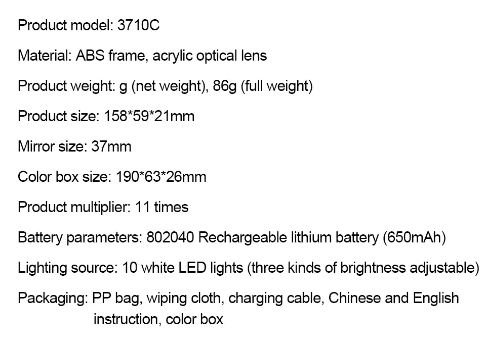 ●Lighting source: 10 white LED lamps (three brightness adjustable)