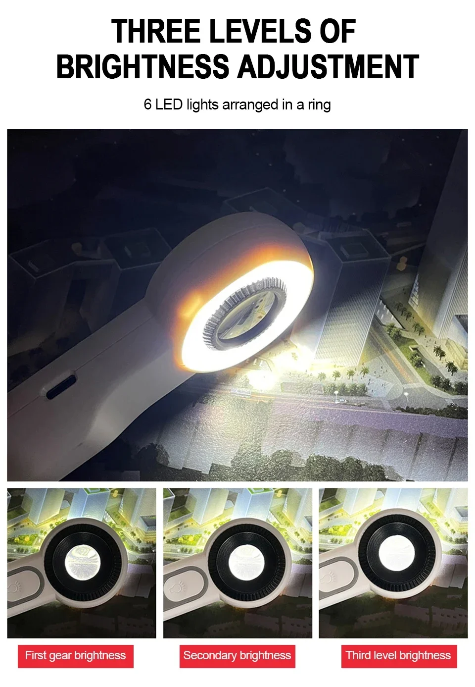 Rechargeable Handheld Magnifier 3 Lighting Modes Illuminated Magnifying Glass with LED Light for Seniors Reading Repair