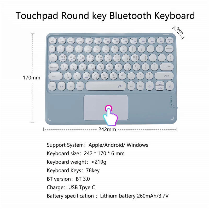 Rechargeable Blue-toothWireless Keyboard Mini Portable Touchpad Tablet Computer Desktop PC Accessories for iPad Windows Android