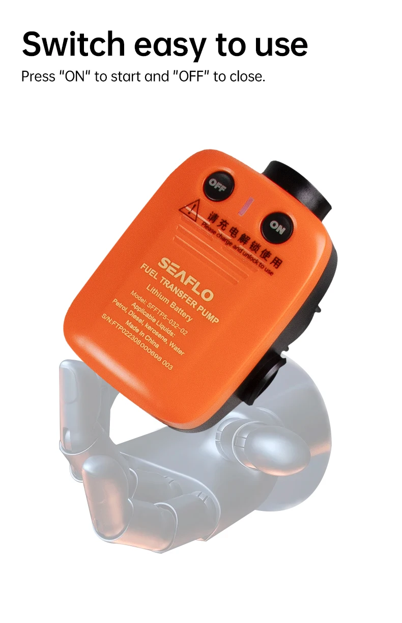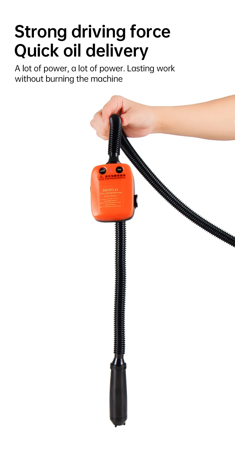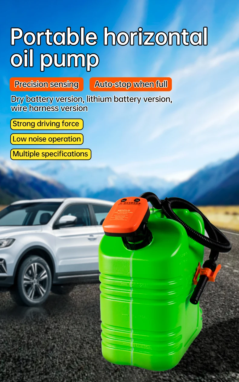 Rechargeable electric car fuel pump with lithium battery, capable of pumping gasoline. Electric, automatic, suitable for self-dr