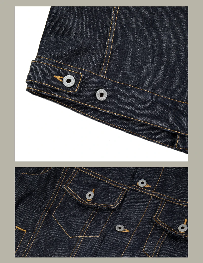 Great quality for the price. This jacket is perfectly sized and heavy and stiff as sleeved fed denim should be. I am very impressed about the quality in the shape and cut and details. The pockets are very impressive made from strong cotton herringbone patterned canvas. Buttons are sturdy and pretty at the same time