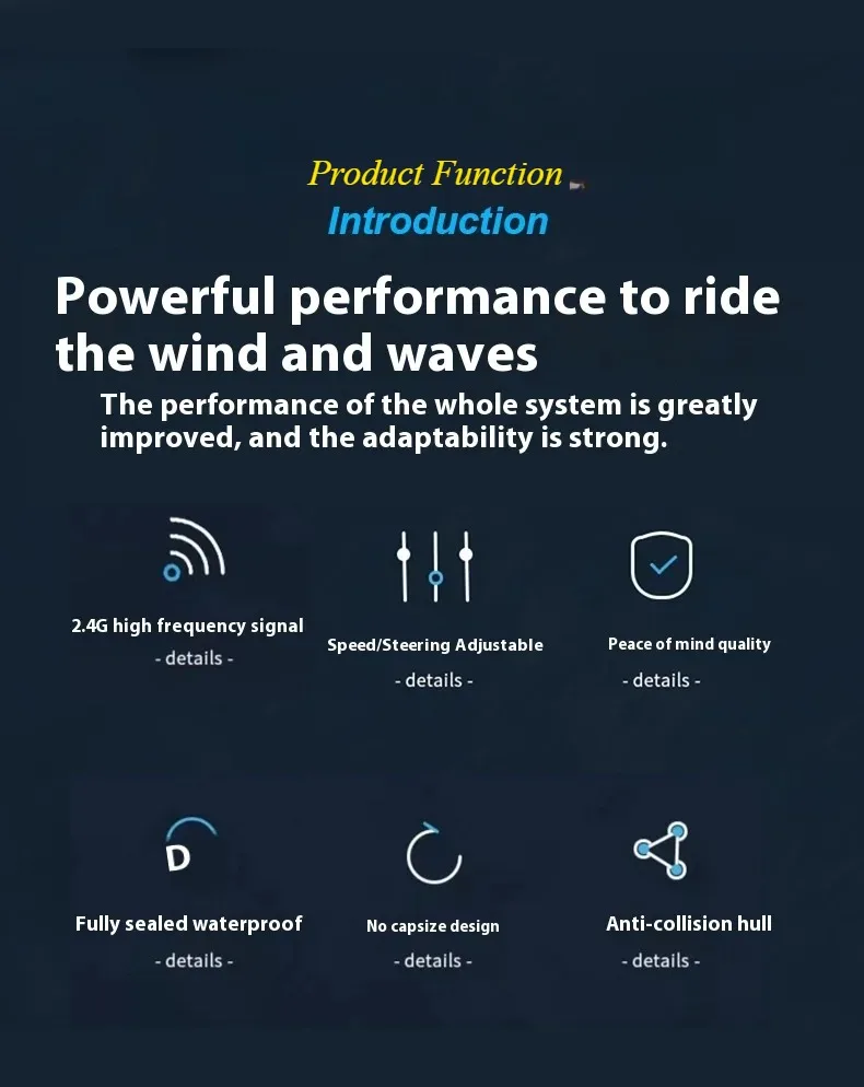 4.High Strength: Crafted from high-strength ABS material, this lightweight and sturdy remote control boat is designed for durability, ensuring it can withstand various water environments and maintain excellent performance