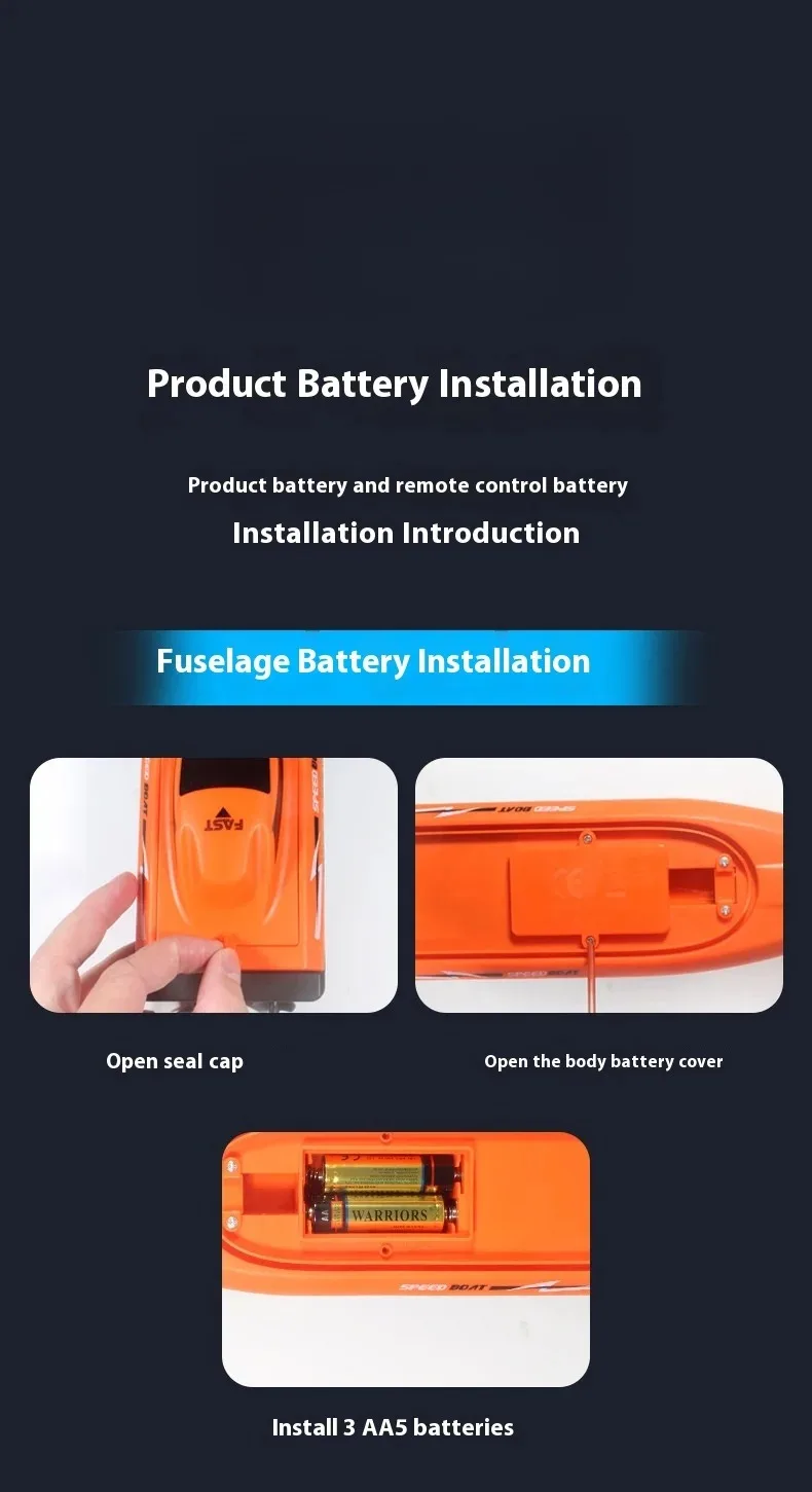 2.Seamless Maneuvering: Equipped with 2.4G wireless remote control technology for uninterrupted signal transmission, our remote control boat provides advanced precision in steering, speed, and turns. You'll have no trouble navigating the waters with this easy-to-use speedboat