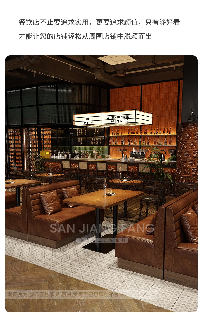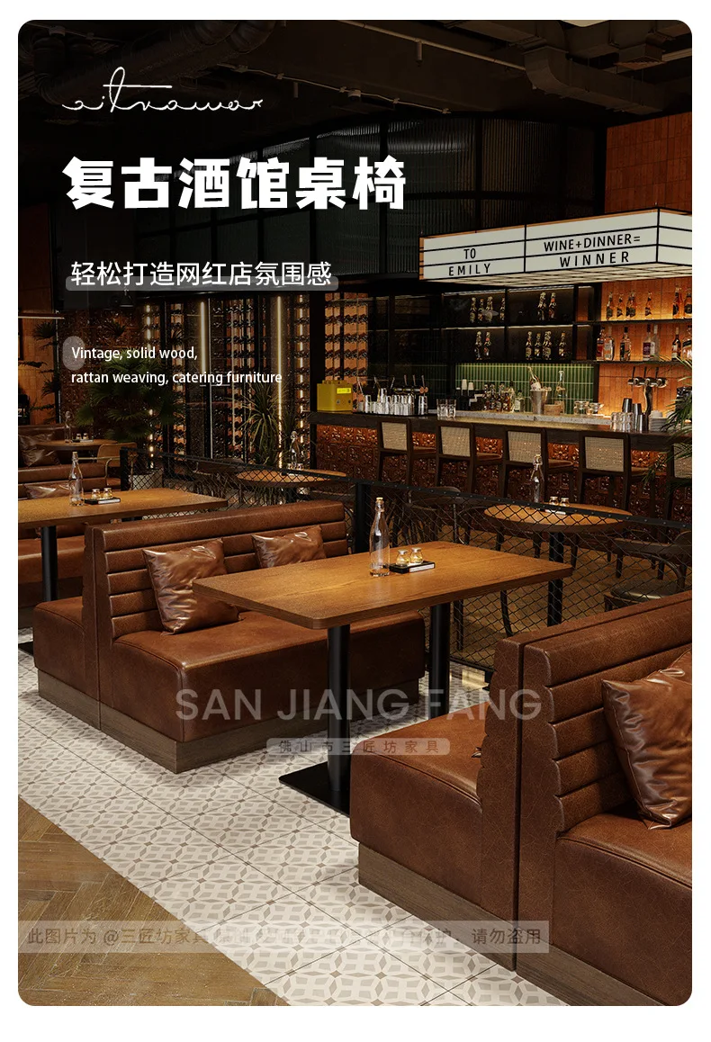 Retro Bar Dining Table and Chair Combination Booth Table Chair Dining Table Western Restaurant Bar Table and Chair