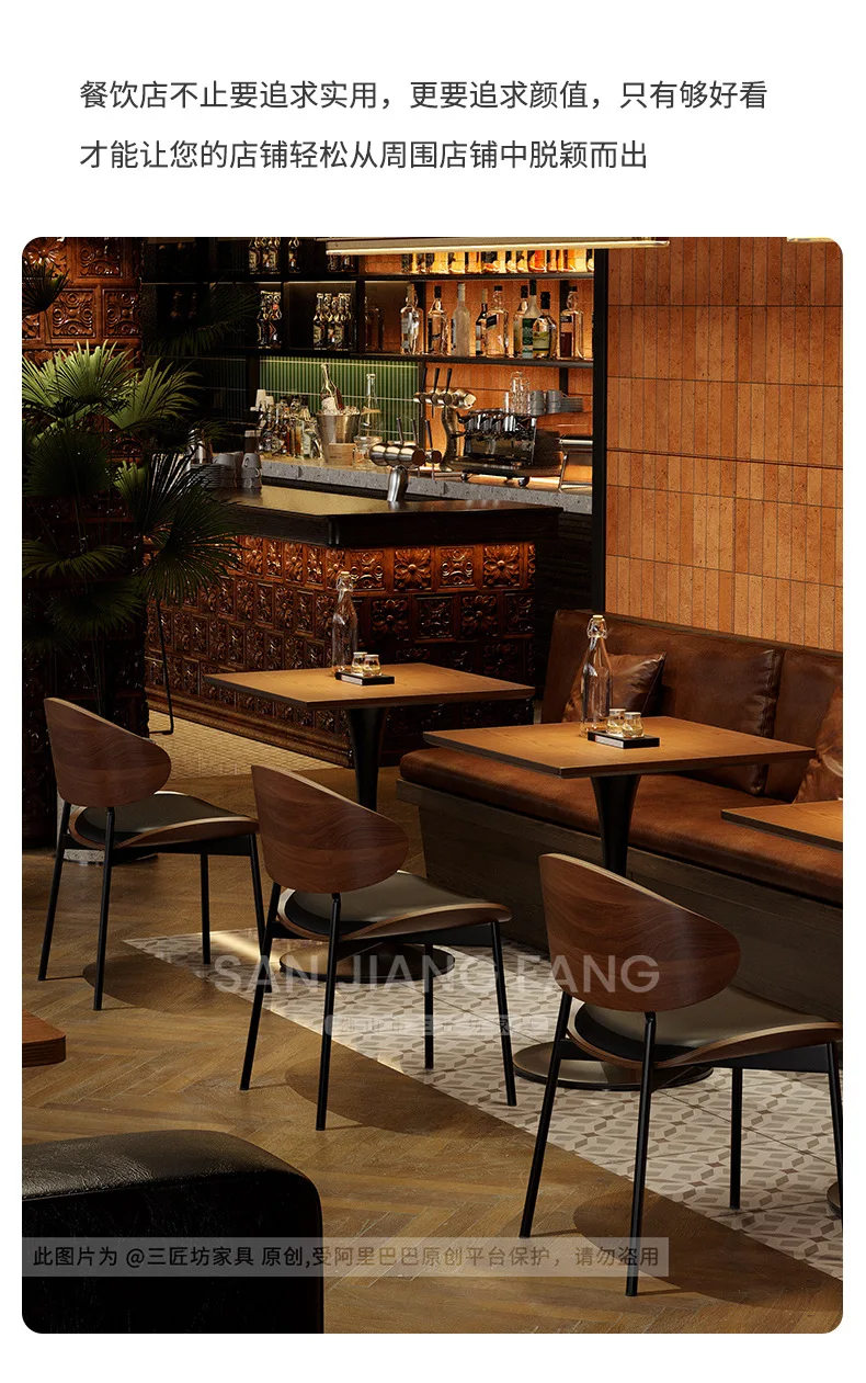 Retro Bar Table and Chair Combination Western Restaurant Solid Wood Dining Small Restaurant Commercial Table and Chair