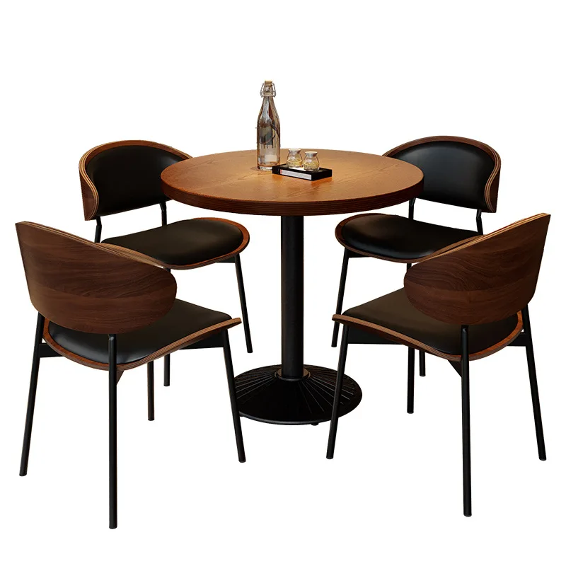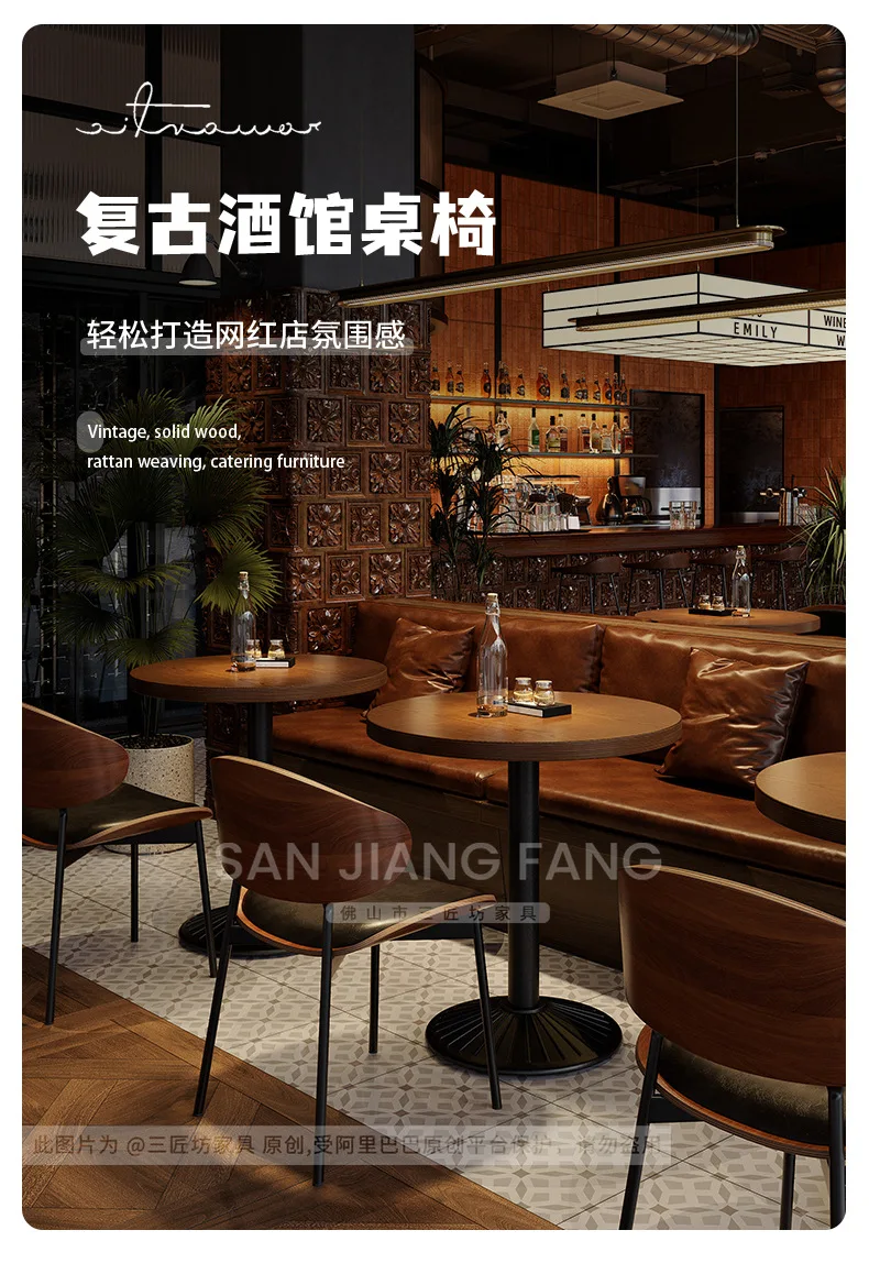 Retro Bar Table and Chair Combination Western Restaurant Solid Wood Dining Small Restaurant Commercial Table and Chair