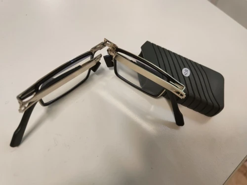 Foldable reader glasses this pair in 1.5 works fine folds arms in half and frame in half leaving at 1/4 of its normal size very neat and easy to carry for something that you don’t have to wear all the time it is a good choice