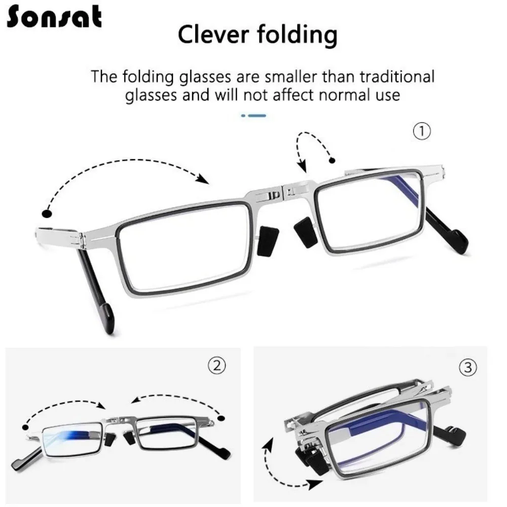 14 reviews for Retro Folding Reading Glasses for Men / Women Metal Frame Anti-blue Light Eyeglasses with Free Case
