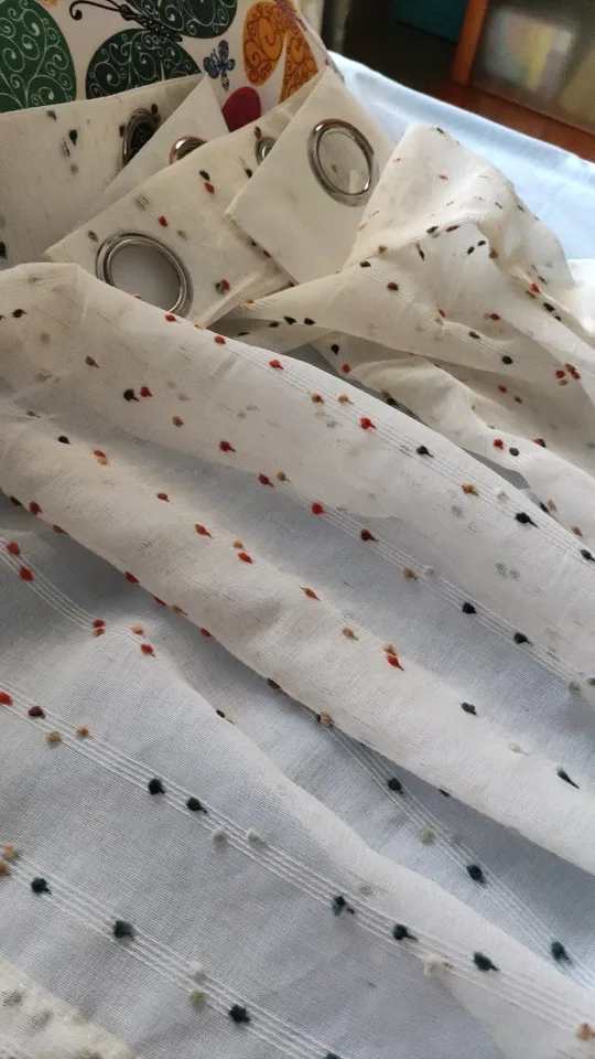 Retro linen-textured sheer curtains with colorful jelly bean pattern, easy to hang, suitable for bedroom and living room