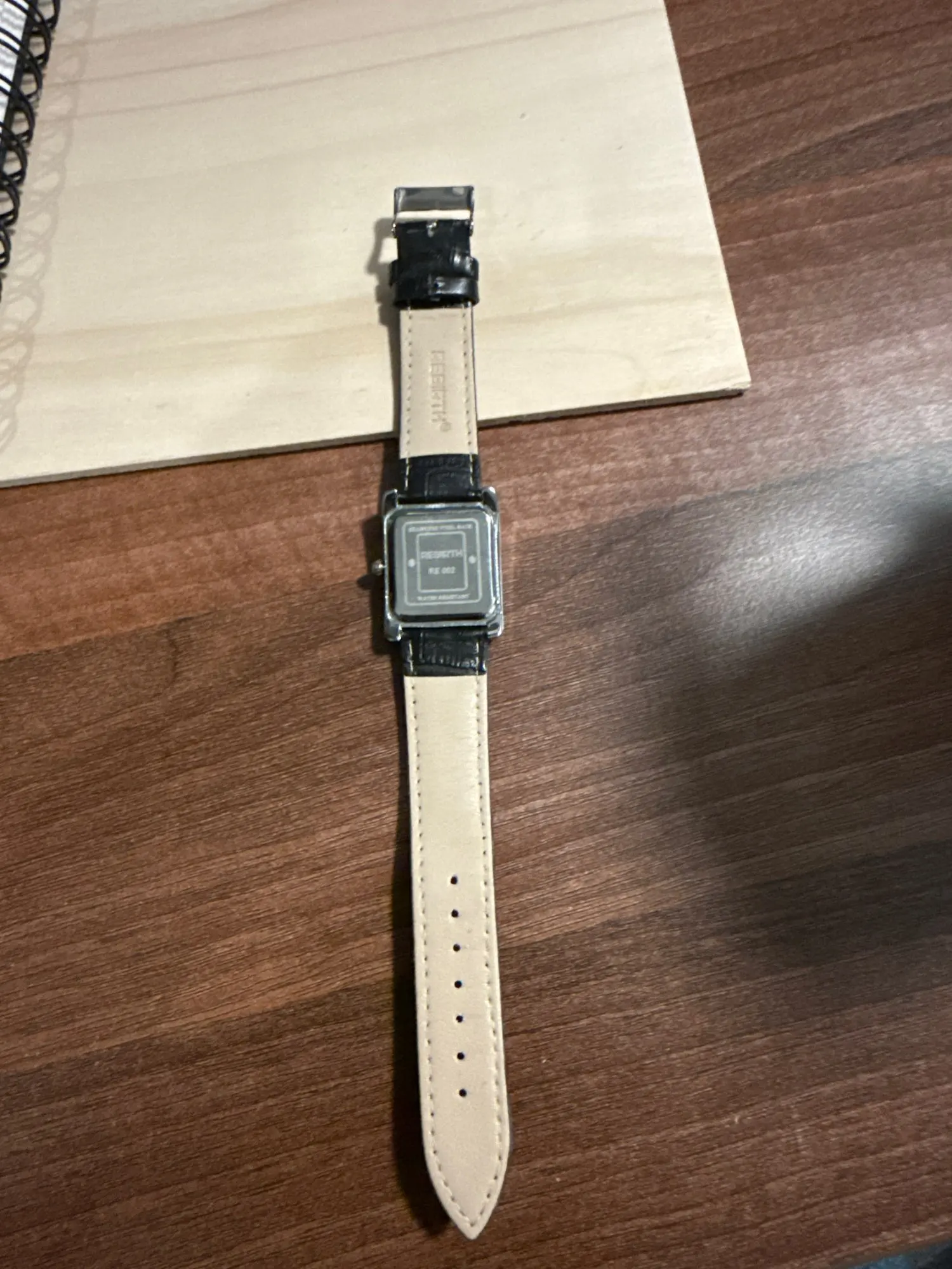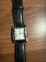 Beautiful Cartier Tank style watch would be even more beautiful if the watch buckle was also rose gold like the watch case. It’s a shame it’s steel-colored but at least it has the brand name engraved.