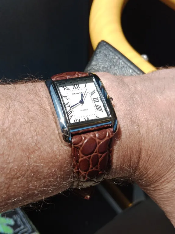Very classic looking watch and the leather band looks great! Perfect size for my wrists. I would recommend this watch to anyone looking to purchase it.