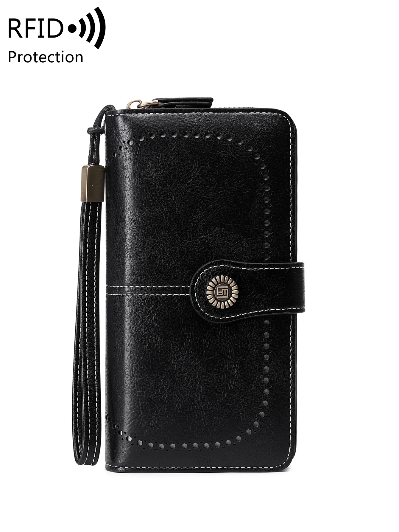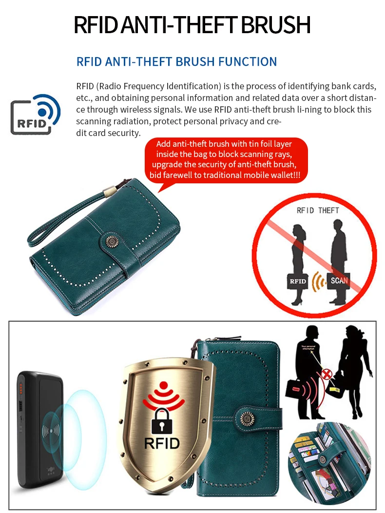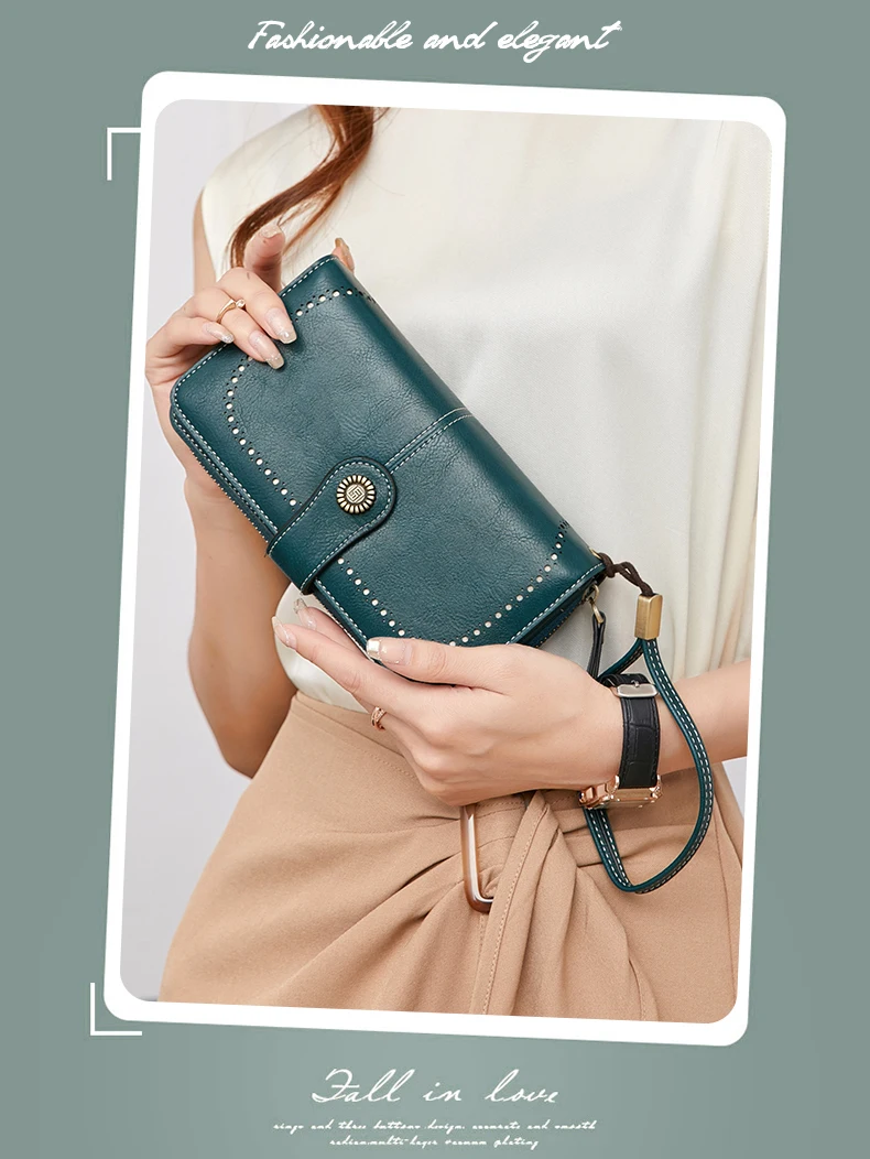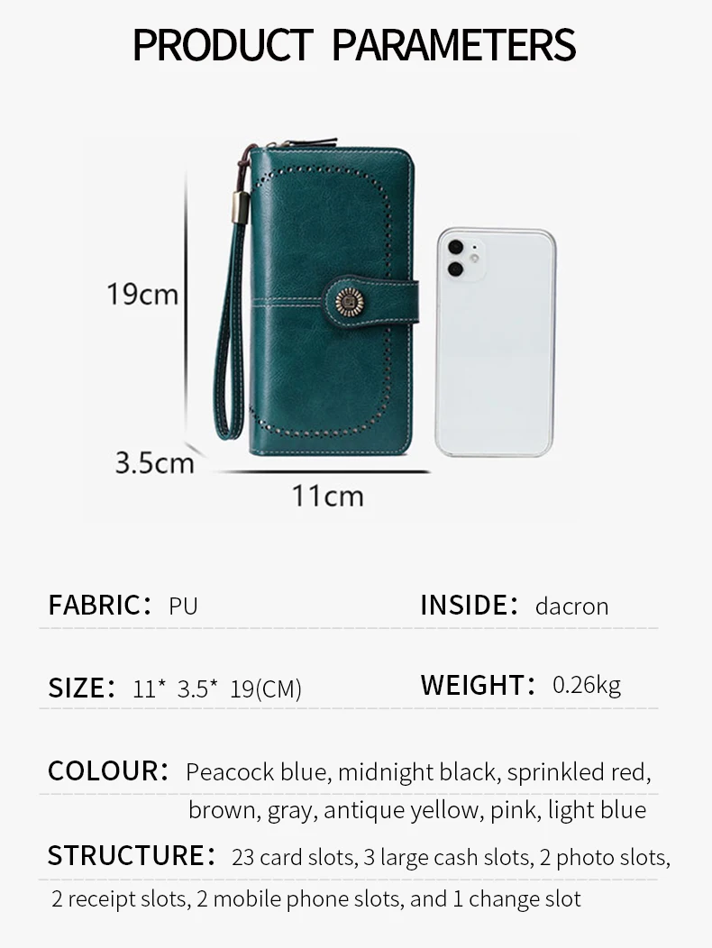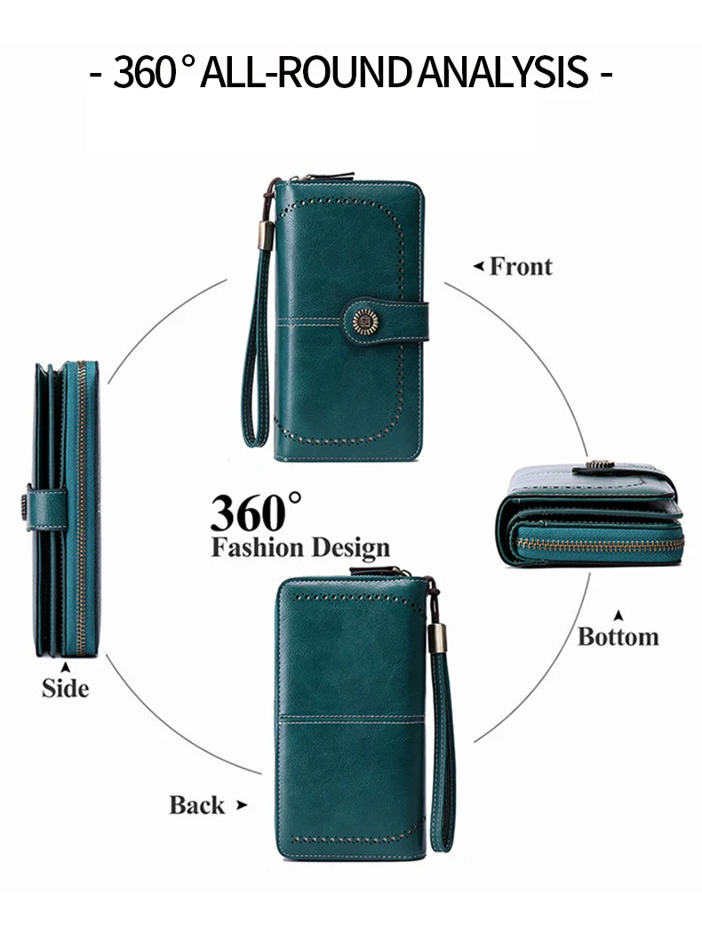 RFID retro three fold large capacity long wallet fashionable solid color women’s wallet multifunctional zipper buckle wallet