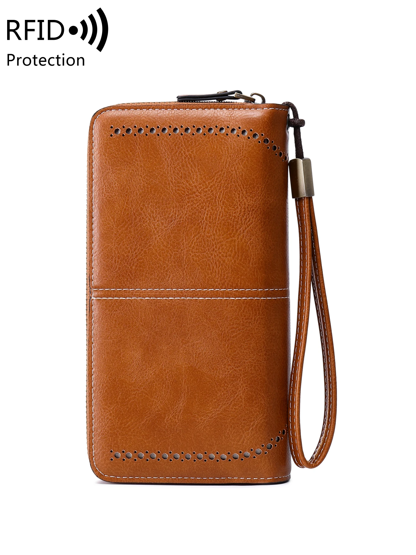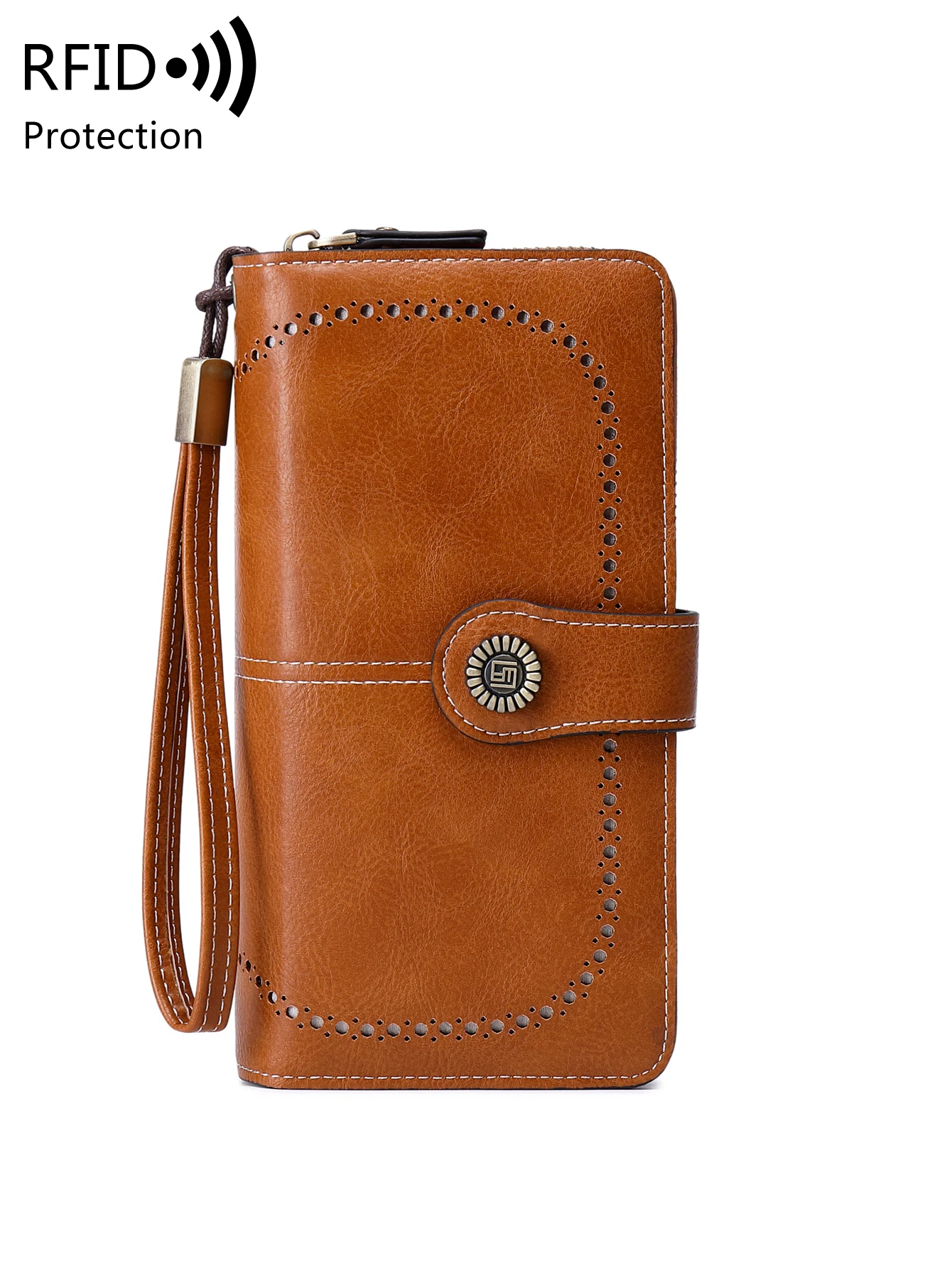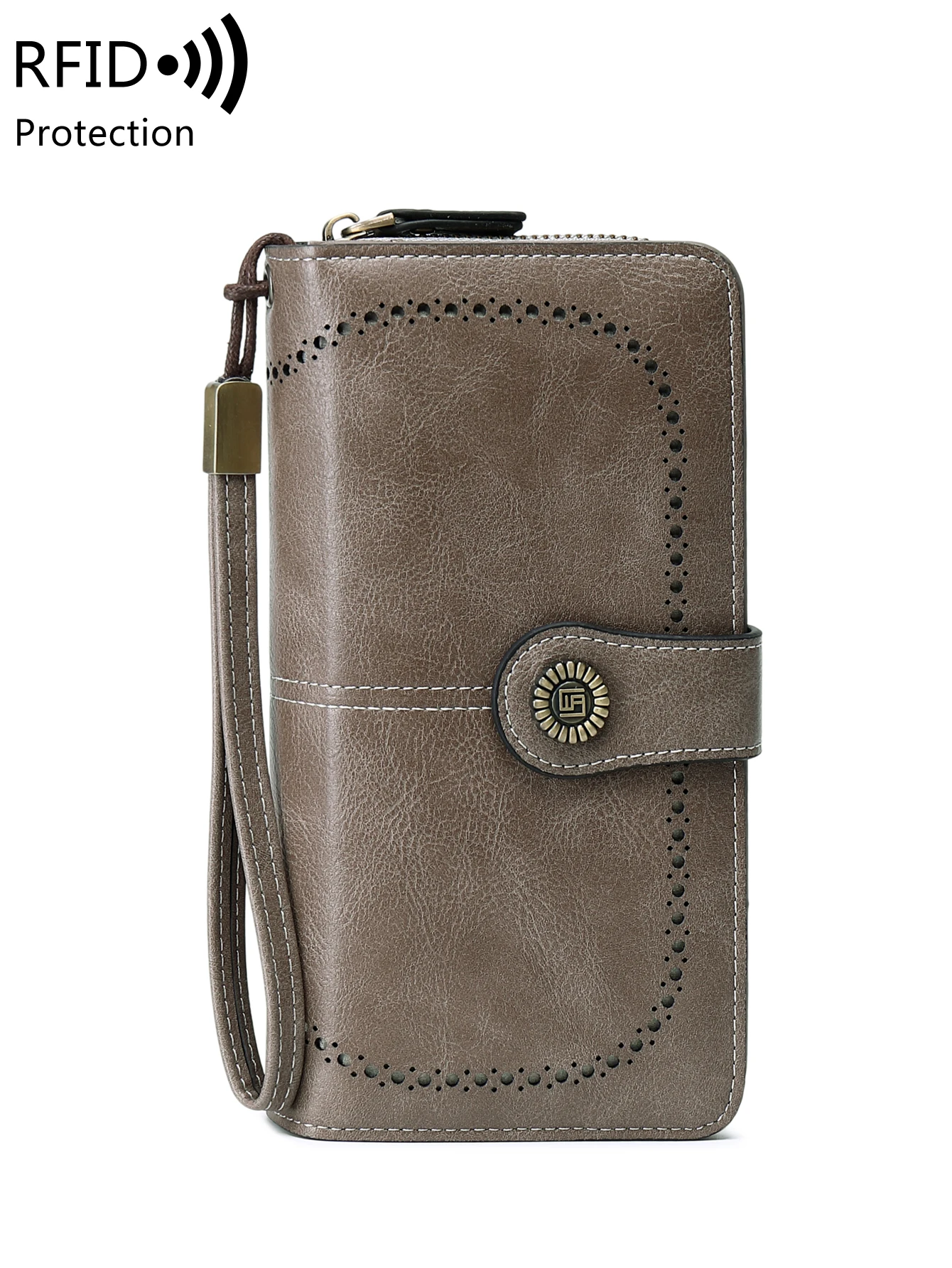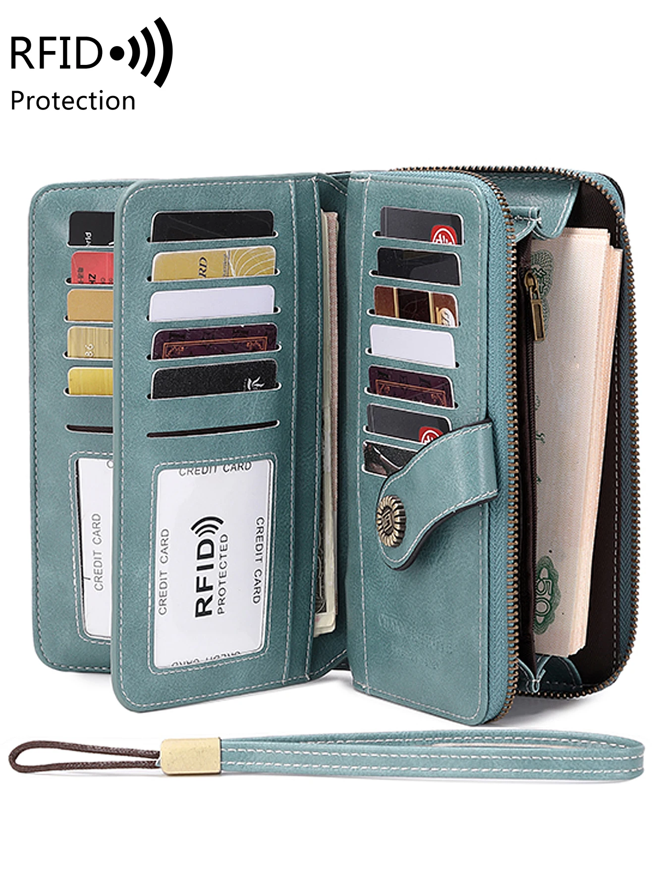 RFID retro three fold large capacity long wallet fashionable solid color women’s wallet multifunctional zipper buckle wallet