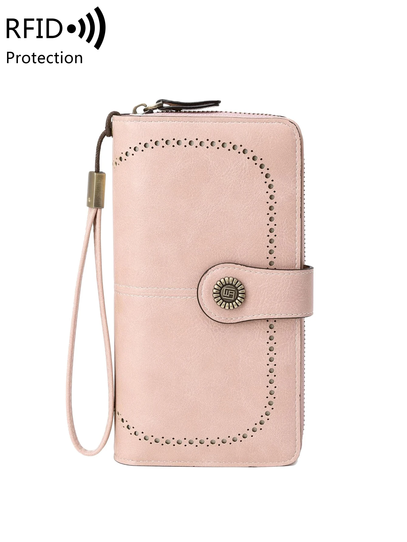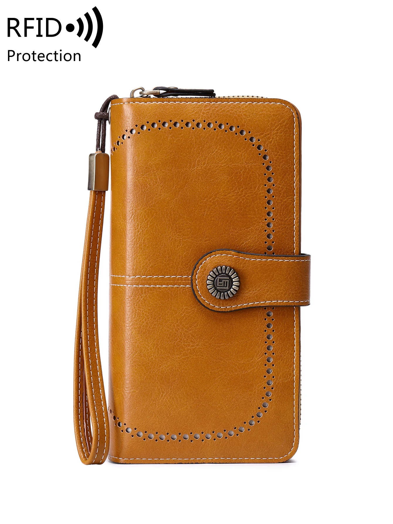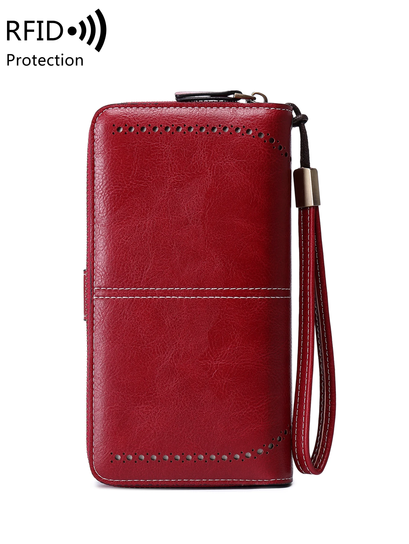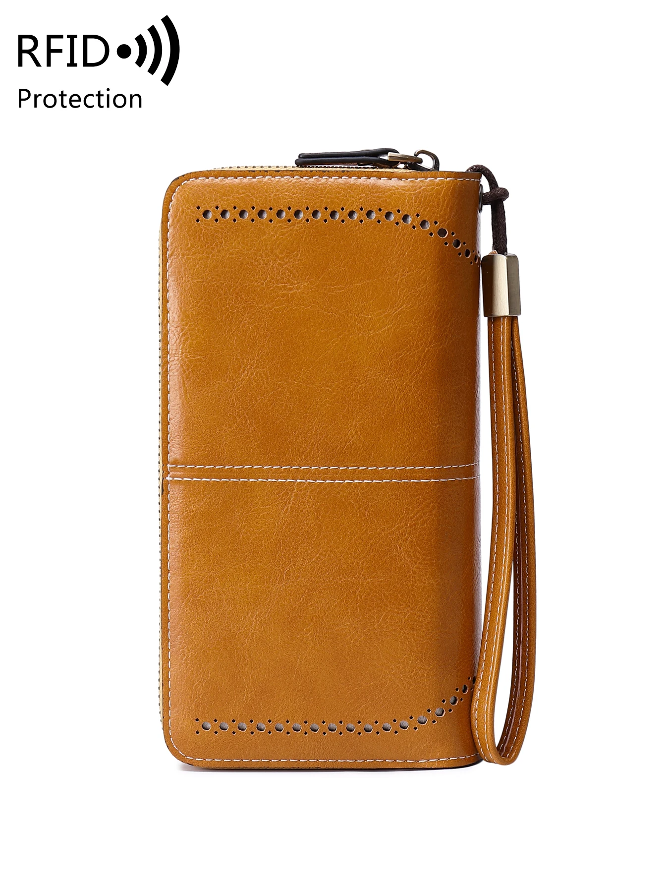 RFID retro three fold large capacity long wallet fashionable solid color women’s wallet multifunctional zipper buckle wallet