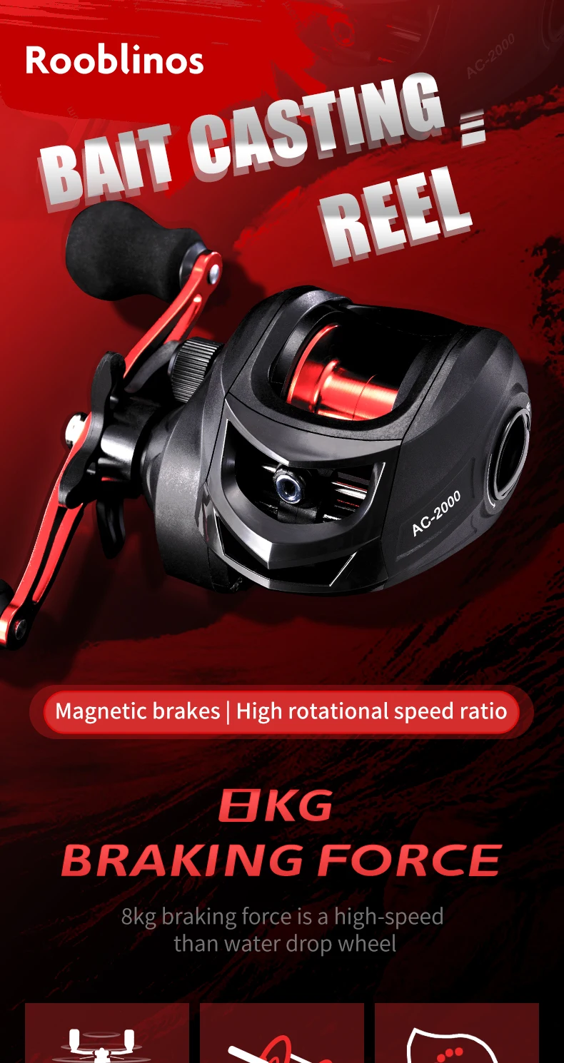 Rooblinos AC Baitcasting Reel Saltwater Freshwater Fishing Reels Max Drag 8KG Light Surf Cast Reel Baitcaster Reels