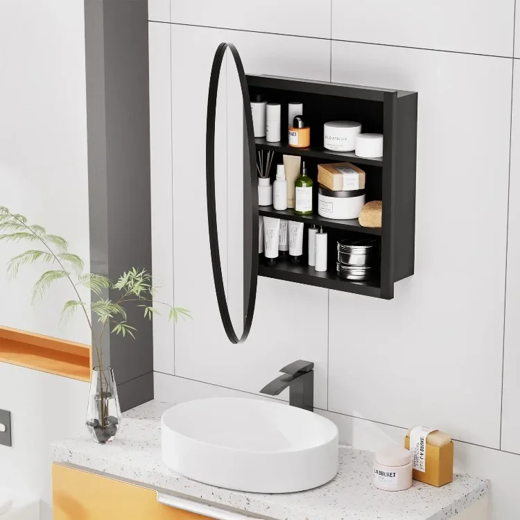 Round Bathroom Cabinet Mirror Wall Mounted Assembled Storage Adjustable Shelf Modern Mobile Bagno Single Door Home Furniture