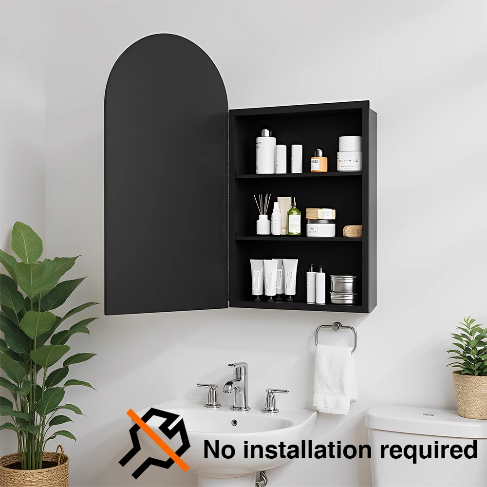 Adjustable shelf: the wall-mounted mirror cabinet with 2 adjustable shelf design, which can freely adjust the height of each layer to place more items and achieve more efficient storage.