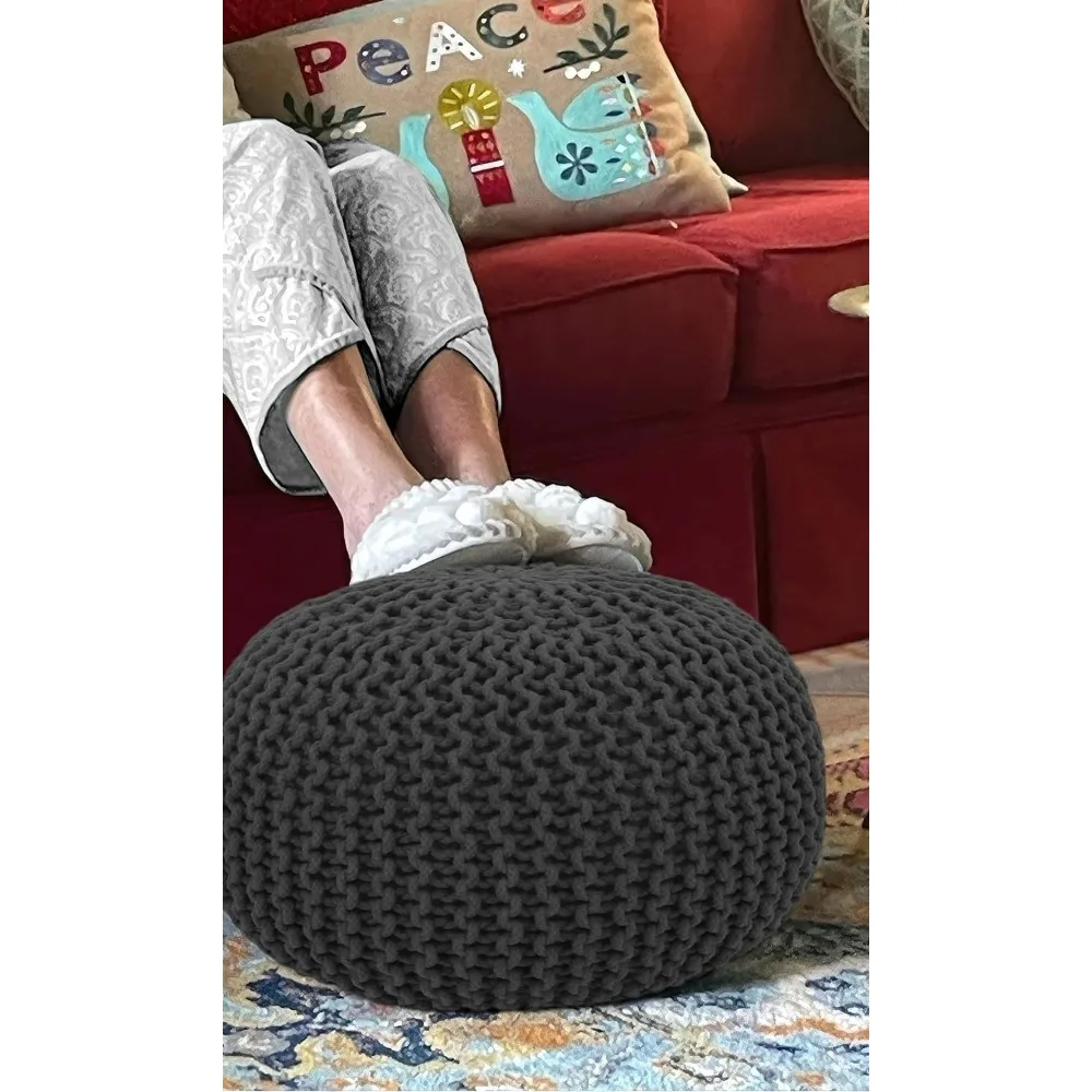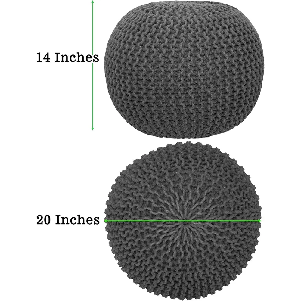 - Hand Knitted Cable Style Dori Pouf – Floor Ottoman. Filled with dense polystyrene (EPS balls) to retain structure and shape. Color – Light Blue