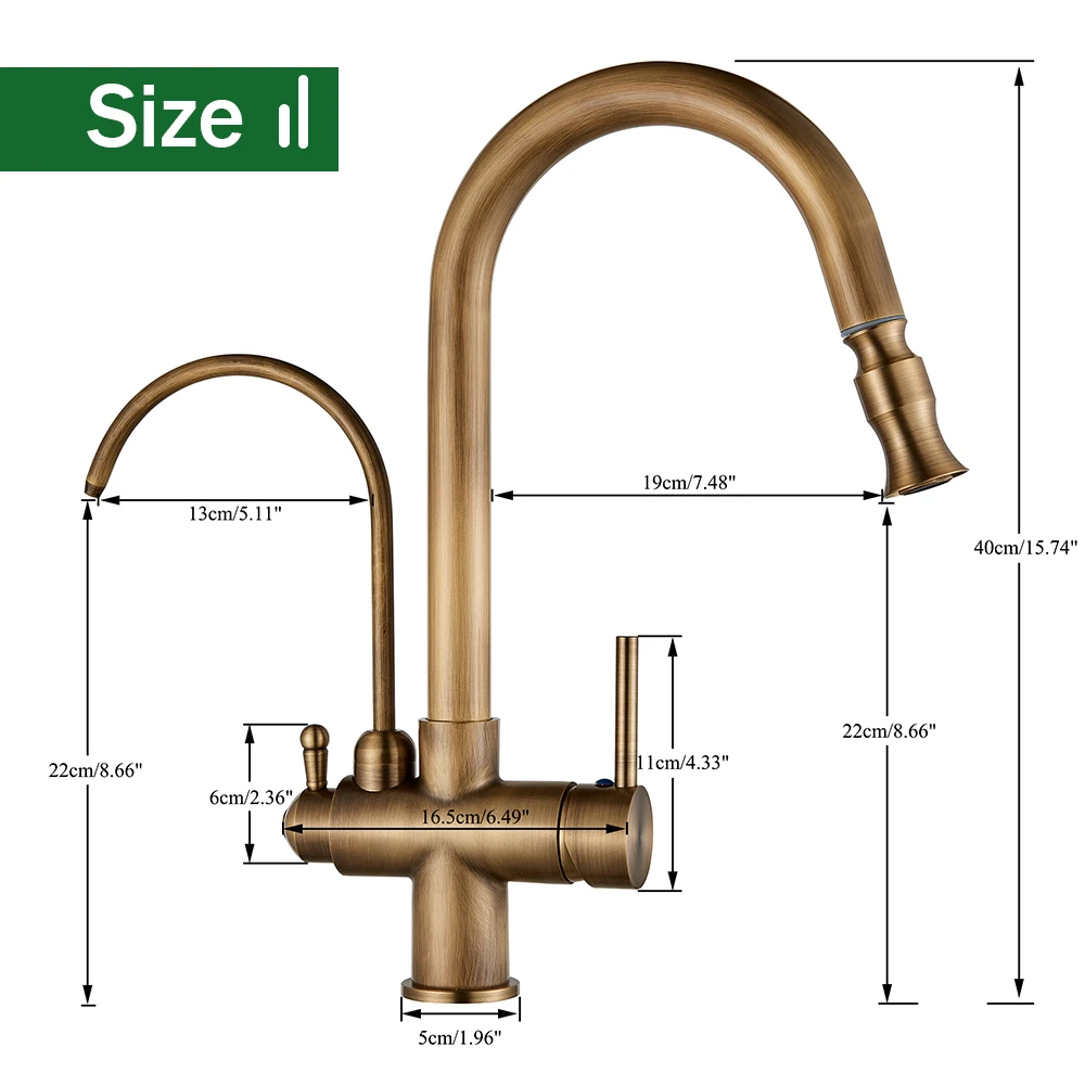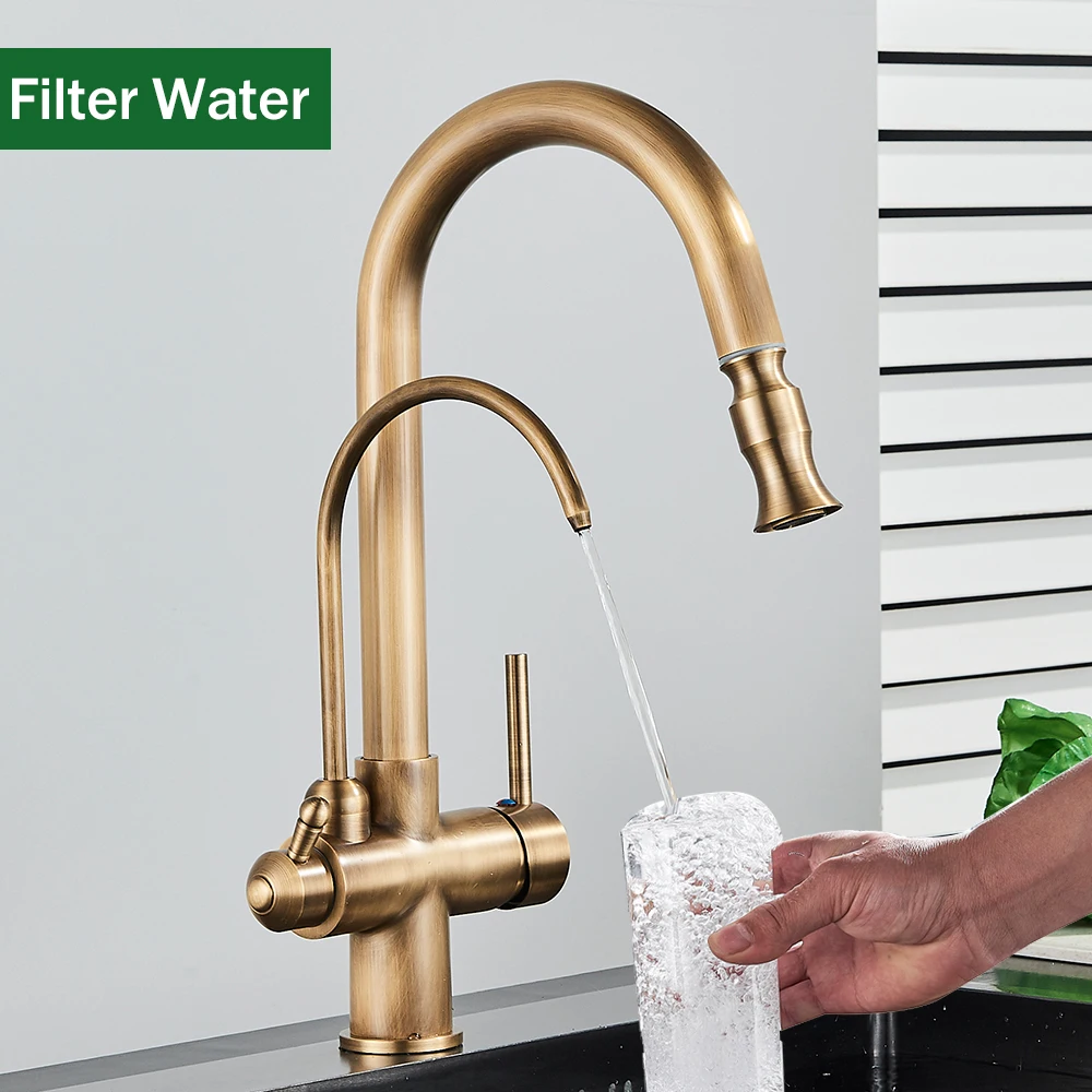 15 reviews for Rozin Filter Water Kitchen Faucet 2 in 1 Antique Brass Pull Out Nozzle Kitchen Purification Crane 2 Ways Swivel Mixer Tap