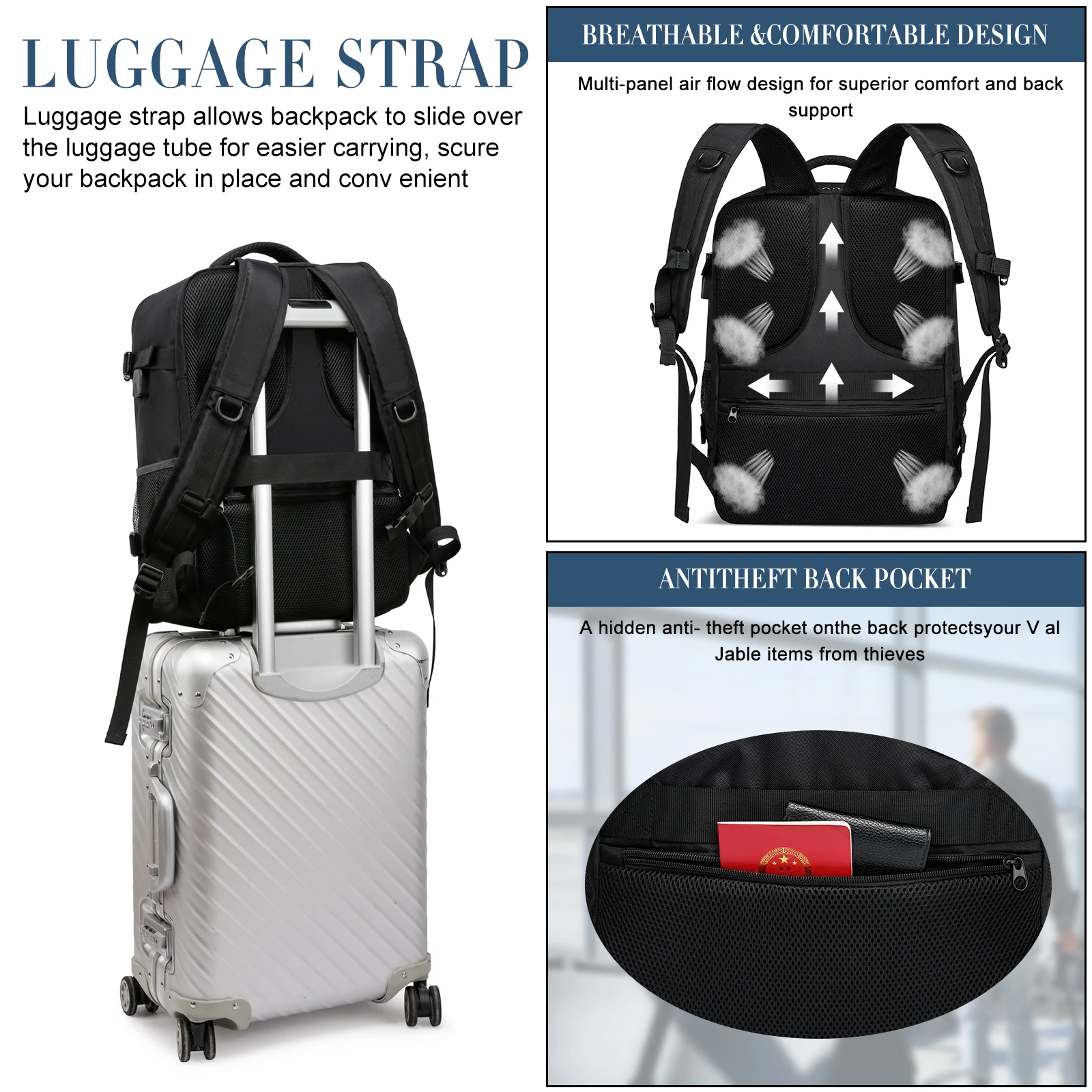 Have a business style, this backpack is ideal for professional use as well as leisure travel.