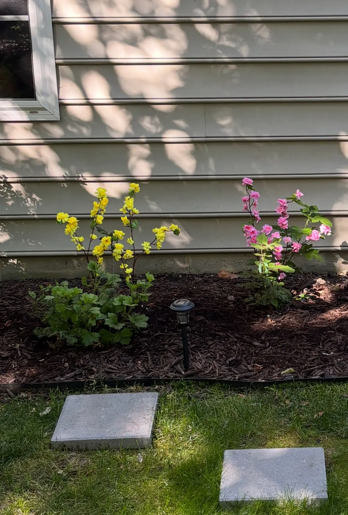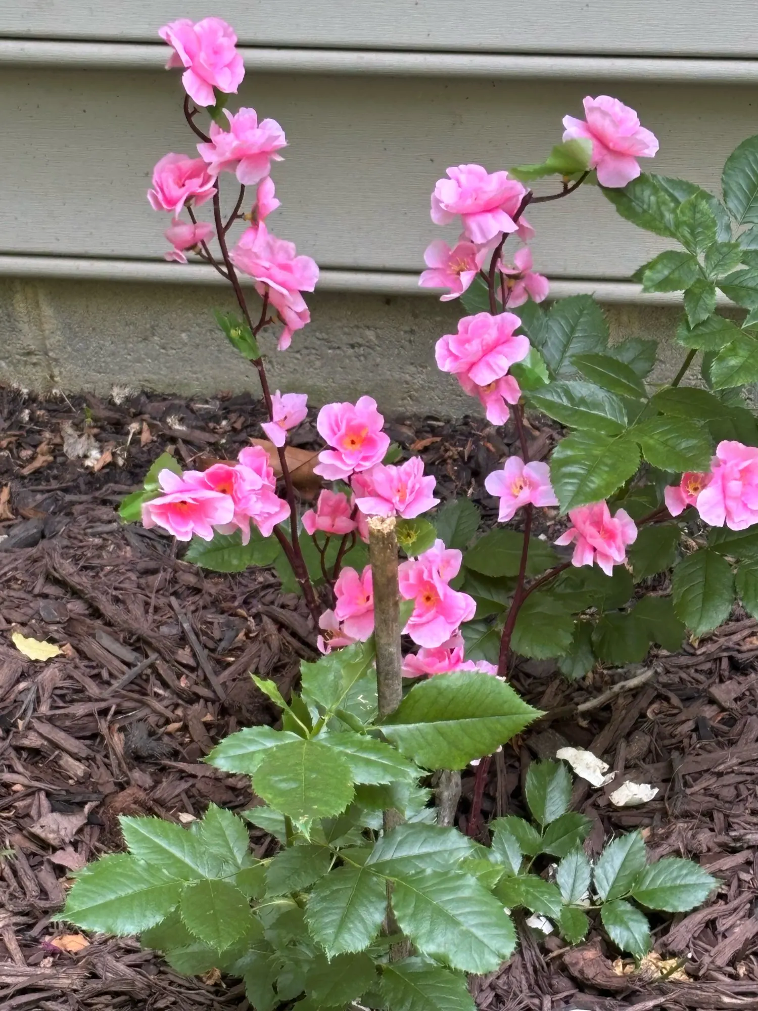 2-pieces together behind a rose bush. Very real looking flower . Passer by said they look great but they don’t know there artifcal 🙂