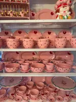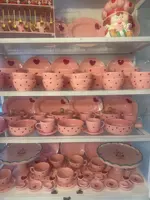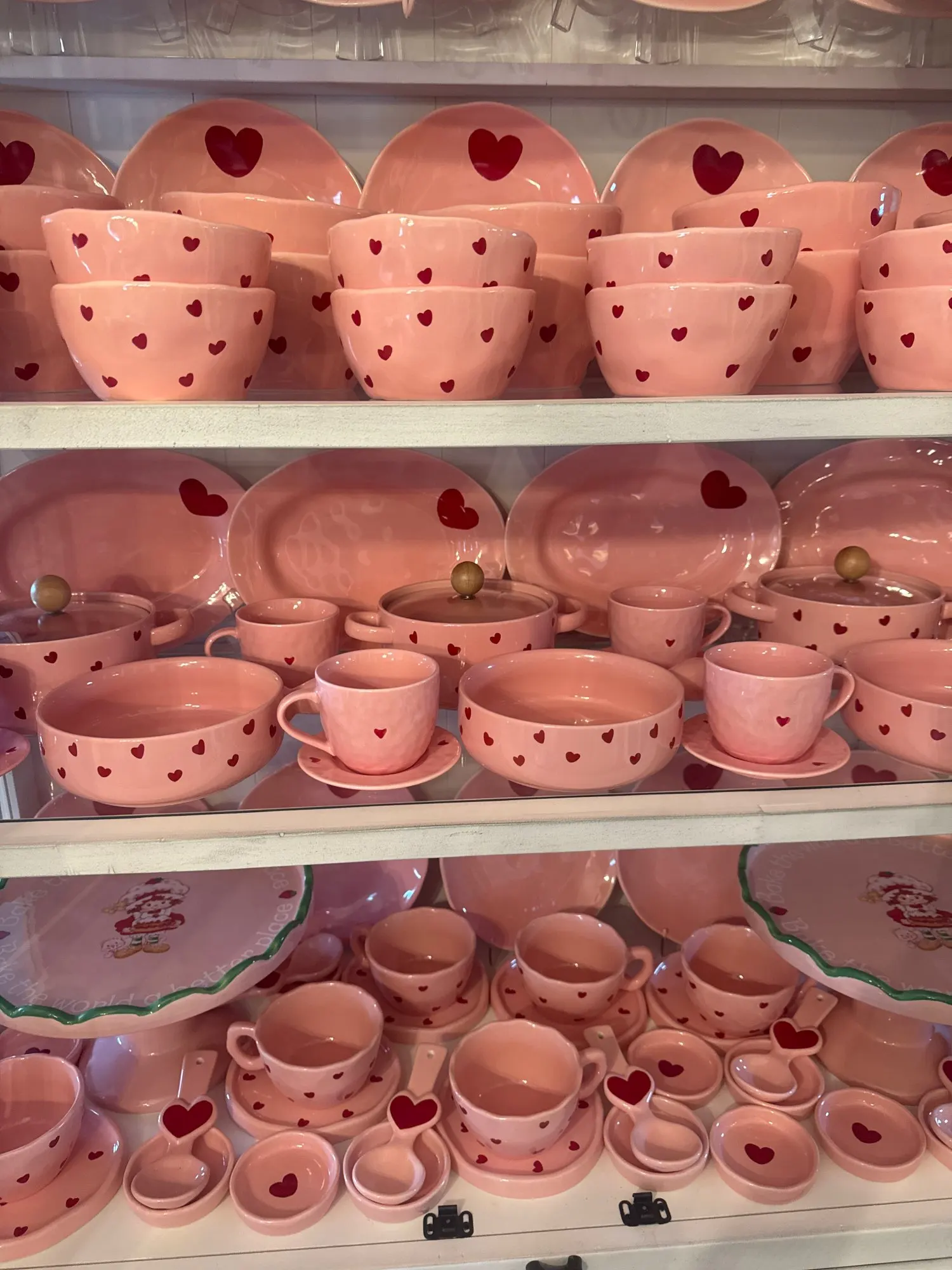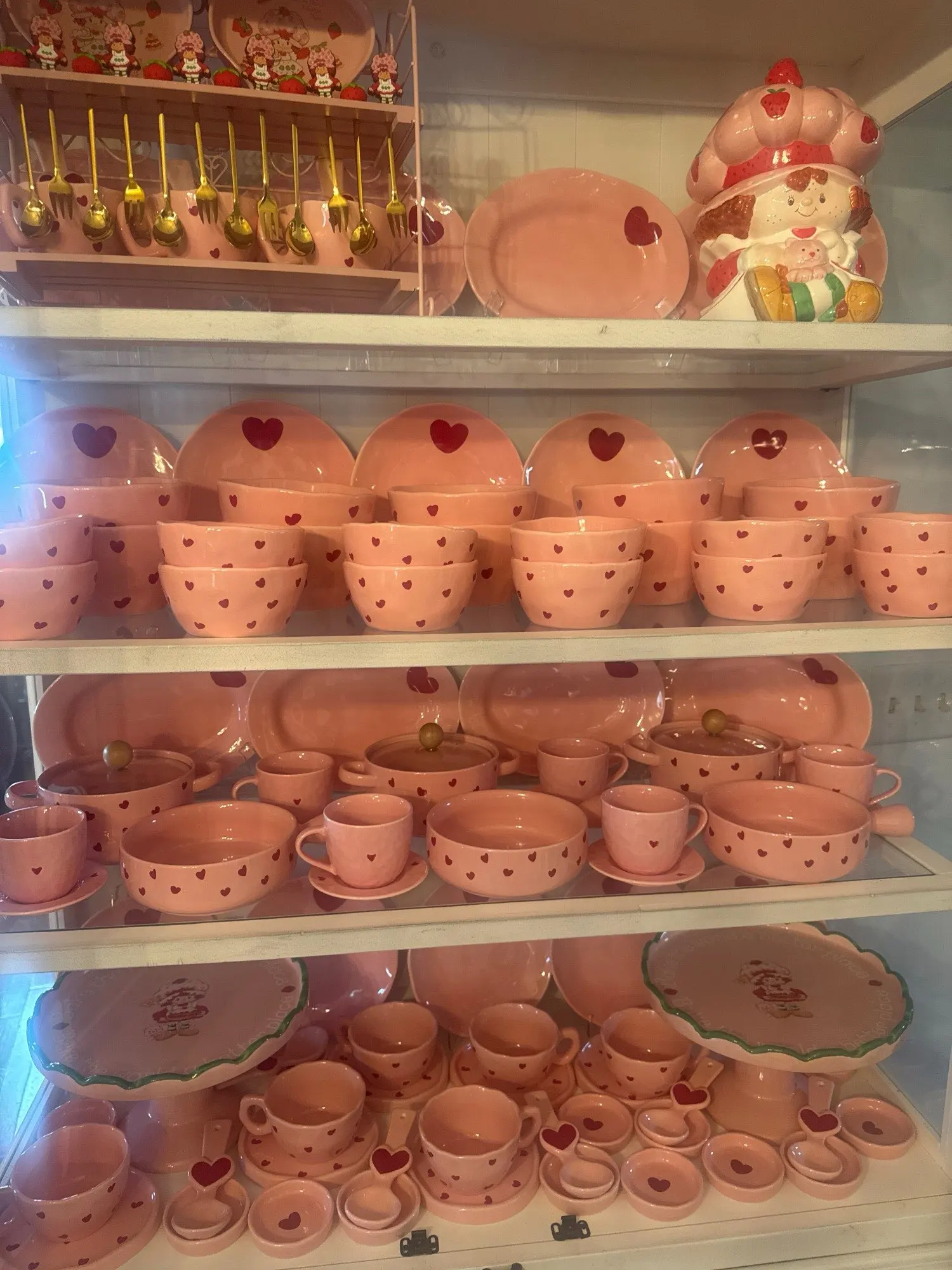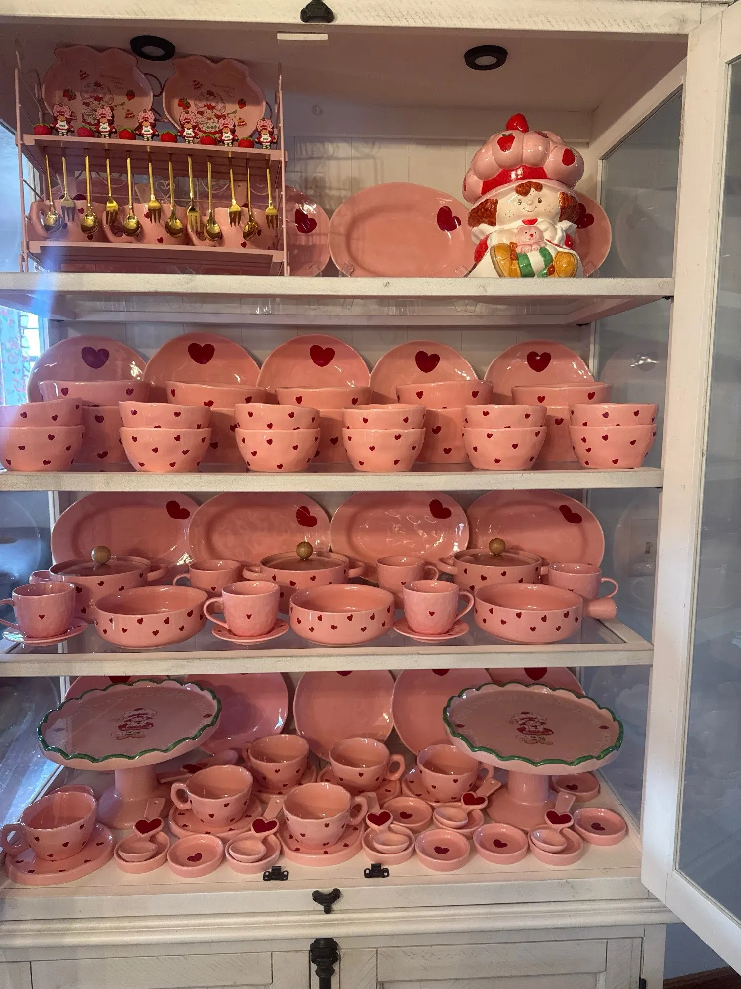 Beautiful ceramic bowl, plate, cup, looks handmade and custom painted. Beautifully crafted with rich, vibrant colors. Has a nice shine and is not overly heavy. Looks and feels expensive. Feels and looks like handmade pottery and of very high quality. Looks amazing with my strawberry shortcake. I’m very happy with my purchase and have purchased many pieces to make a collection. Looks gorgeous in my white hutch.