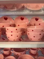 Salad Bowl Pink Heart Pattern Ceramic Plate Coffee Cup Children Dessert Bowl Household Cute Dinner Plates Restaurant Tableware