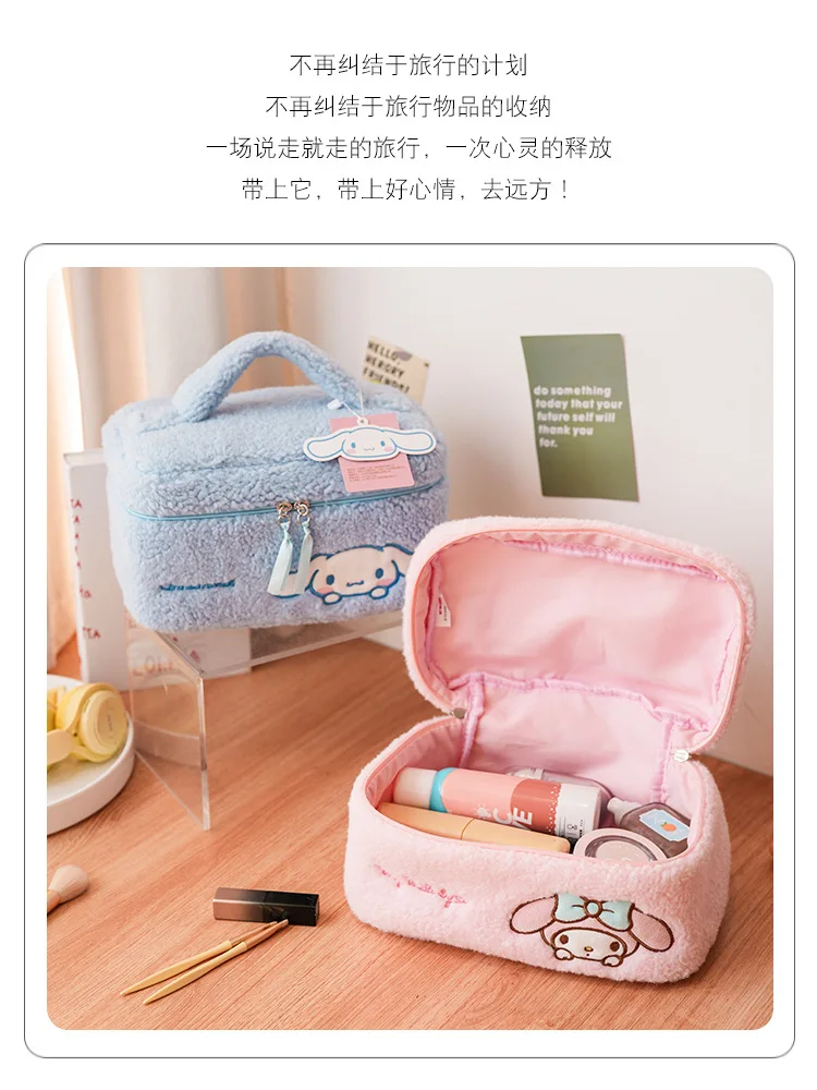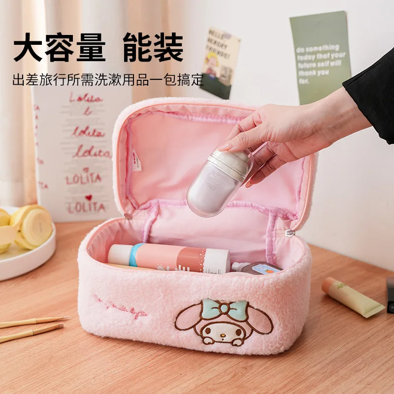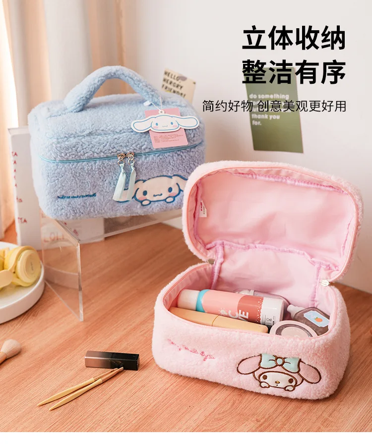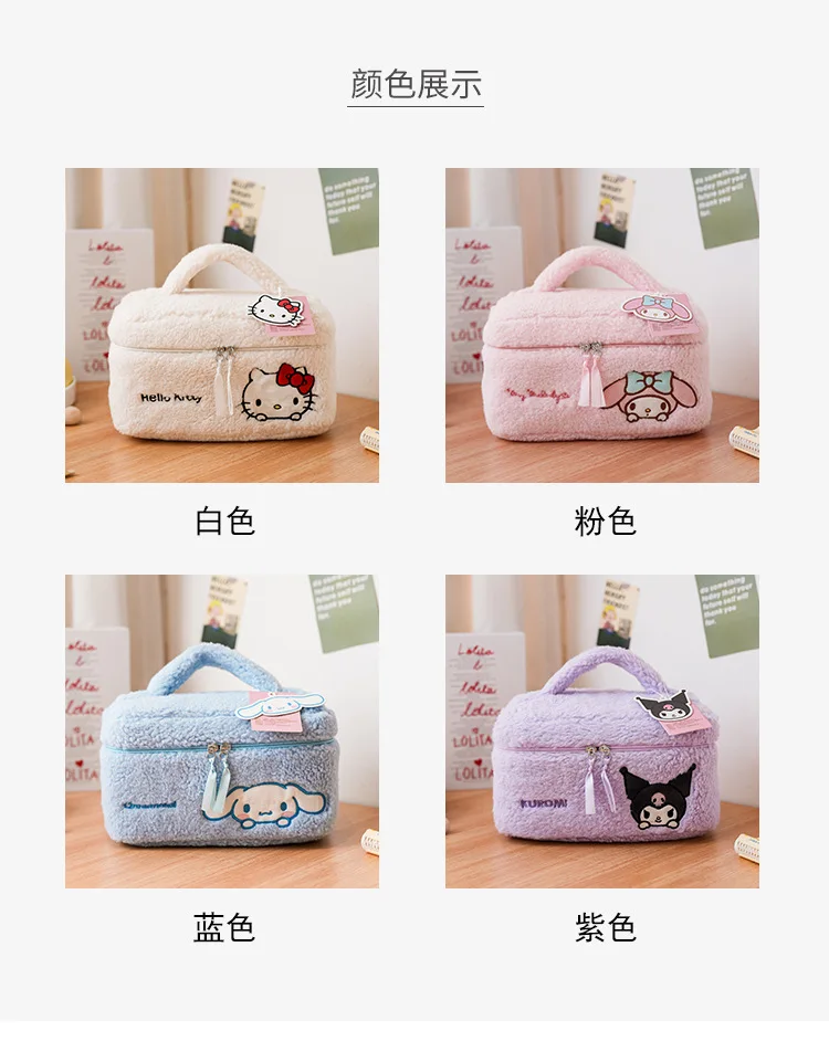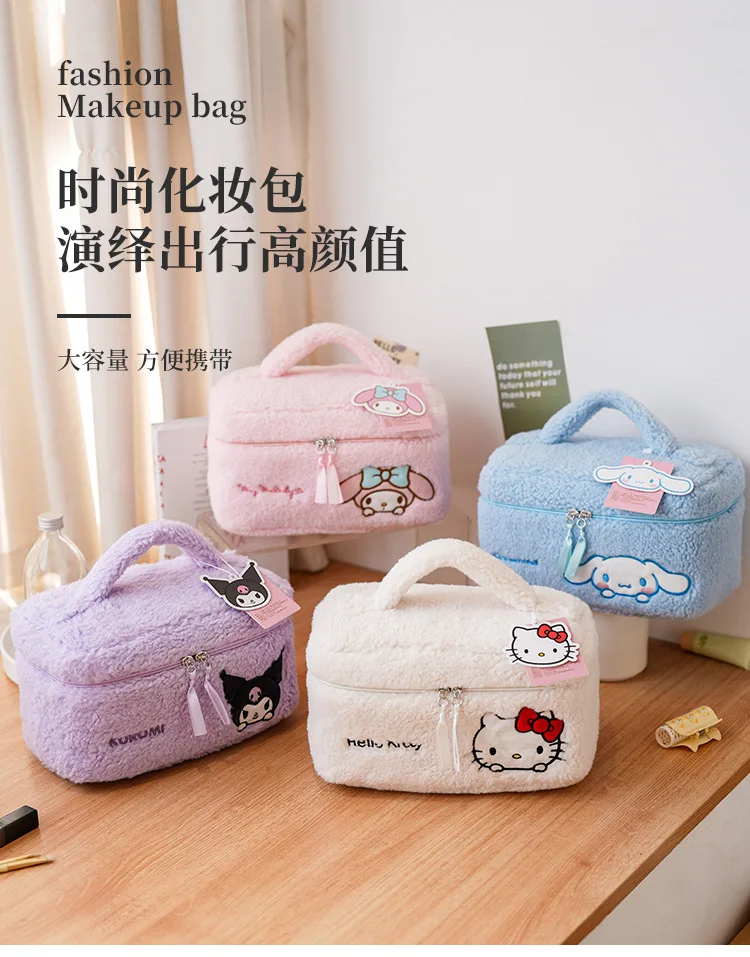 Sanrio Plush Makeup Bag Hello Kitty Cosmetic Bag Clear Pen Case Waterproof Embroidery Travel Toiletry Case Portable Makeup Pouch