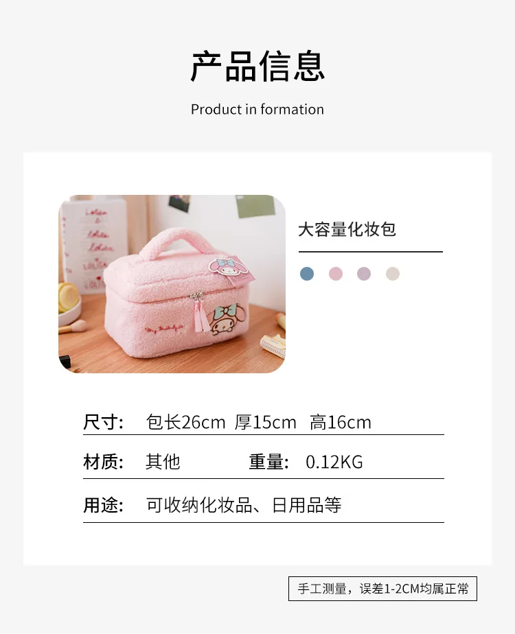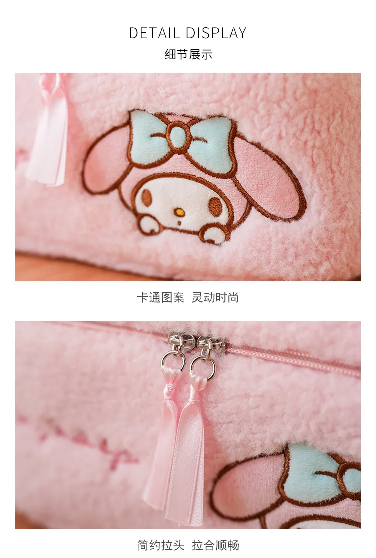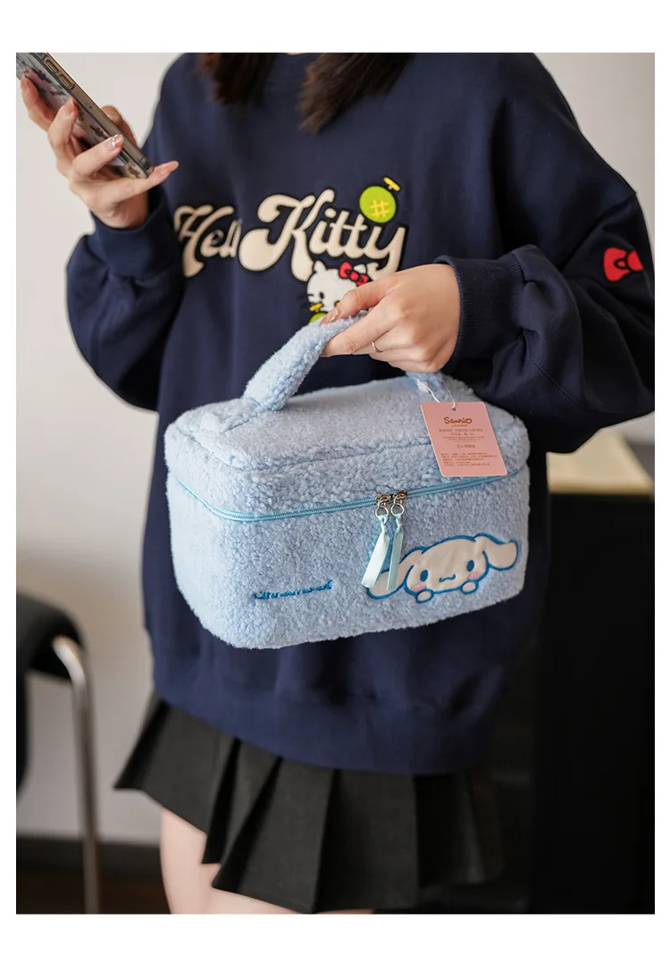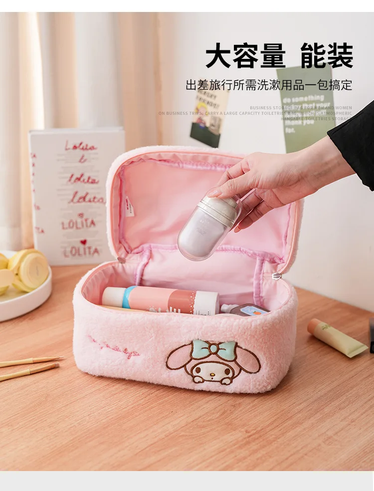 Sanrio Plush Makeup Bag Hello Kitty Cosmetic Bag Clear Pen Case Waterproof Embroidery Travel Toiletry Case Portable Makeup Pouch
