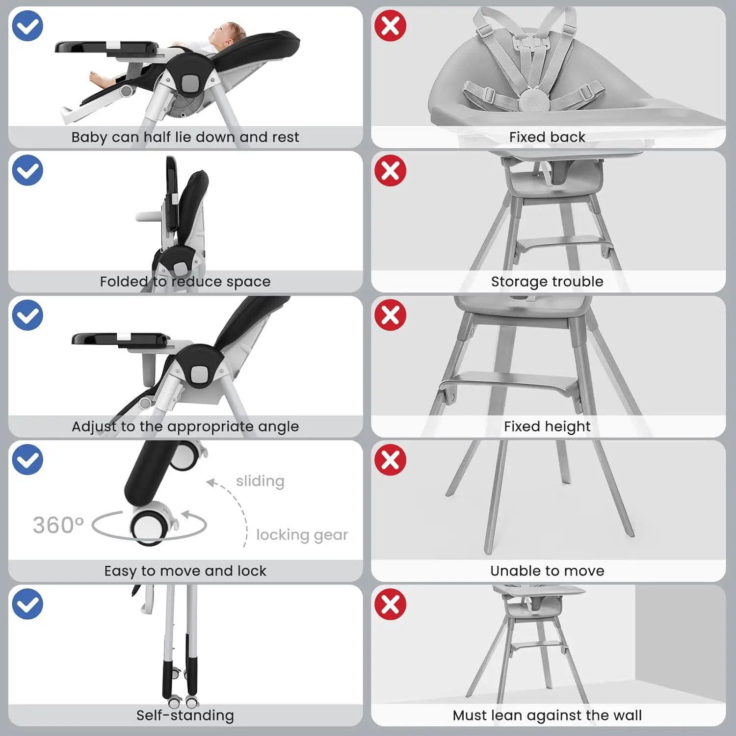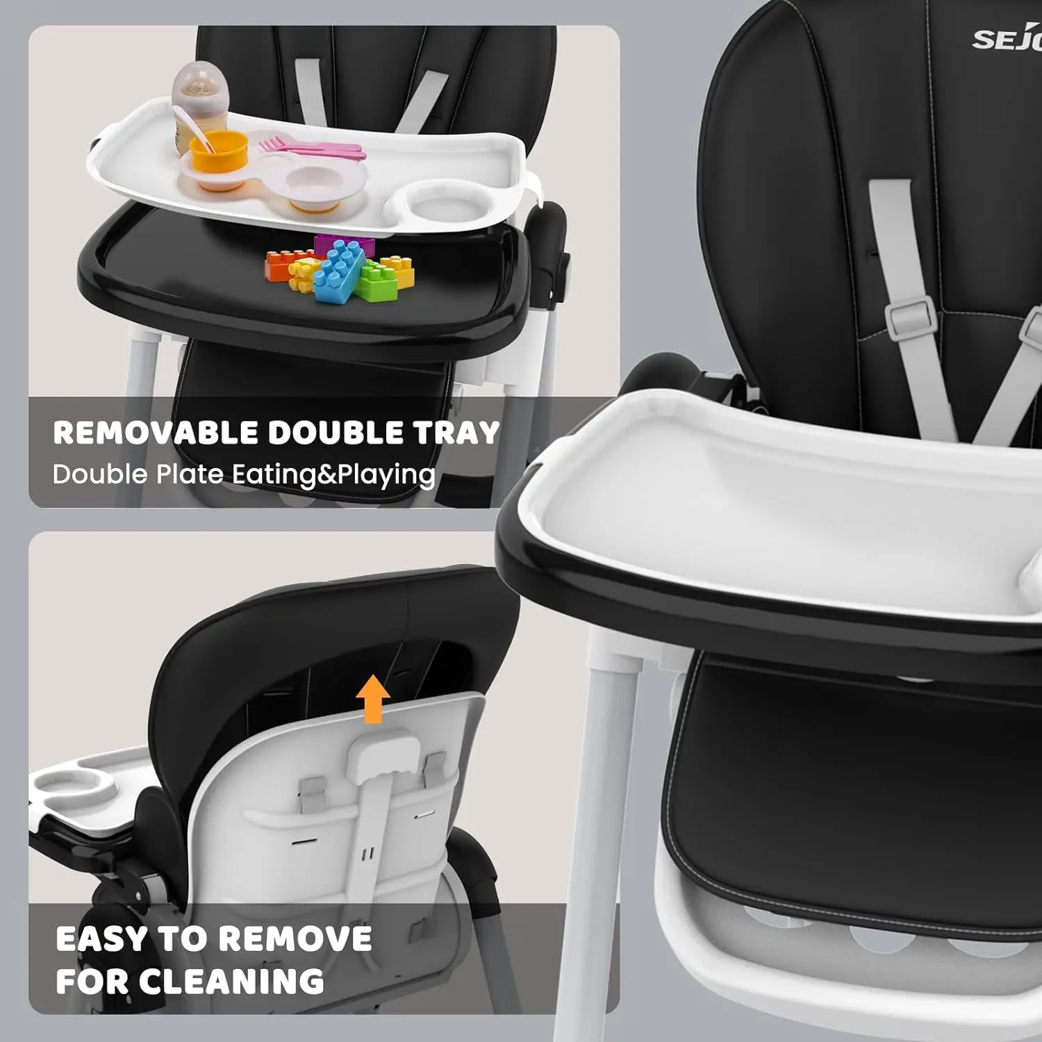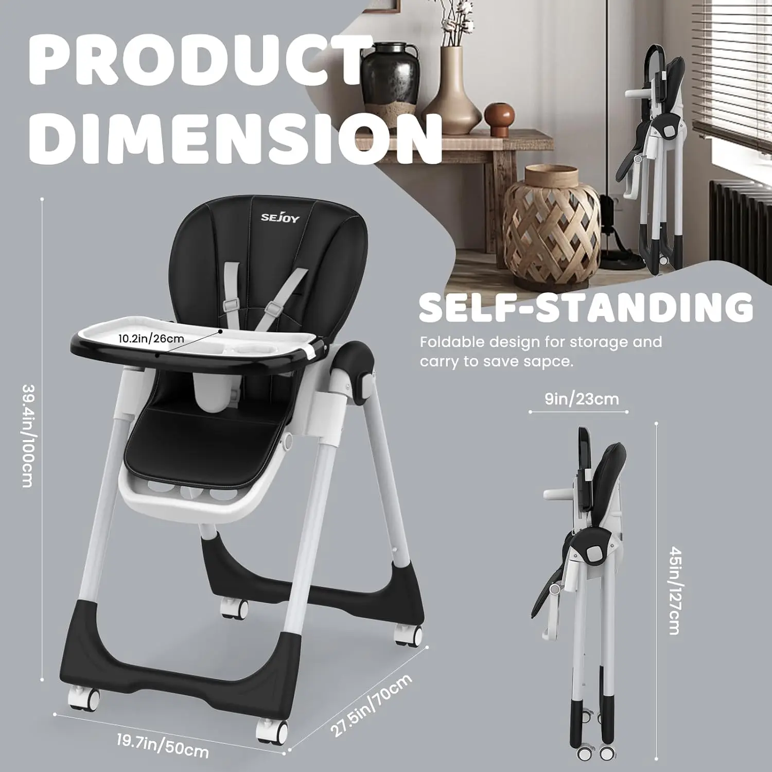 SEJOY Baby High Chair Ajustable Backrest And Pedals Design, Sturdy Metal Material, Foldable Multifunctional Baby Dining Chair