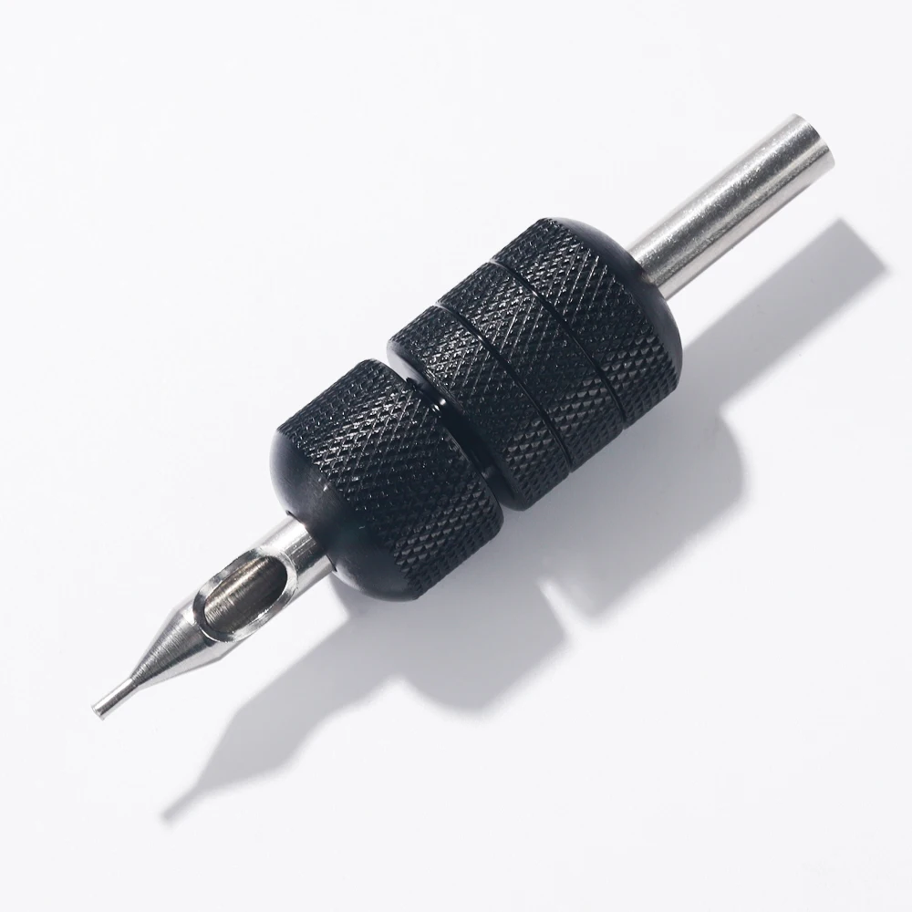 Anti-slip, knurled tattoo machine grips for tattoo machine gun.