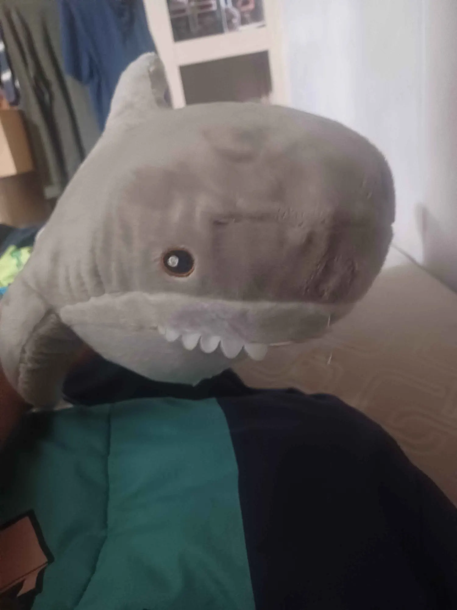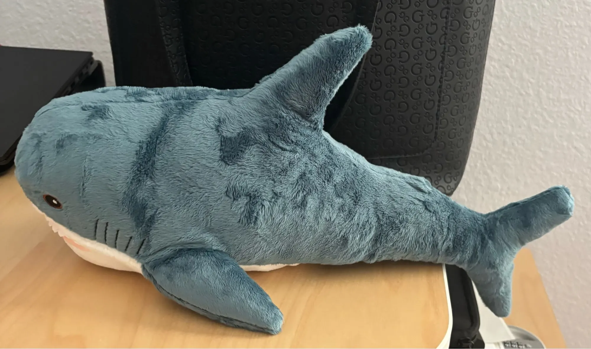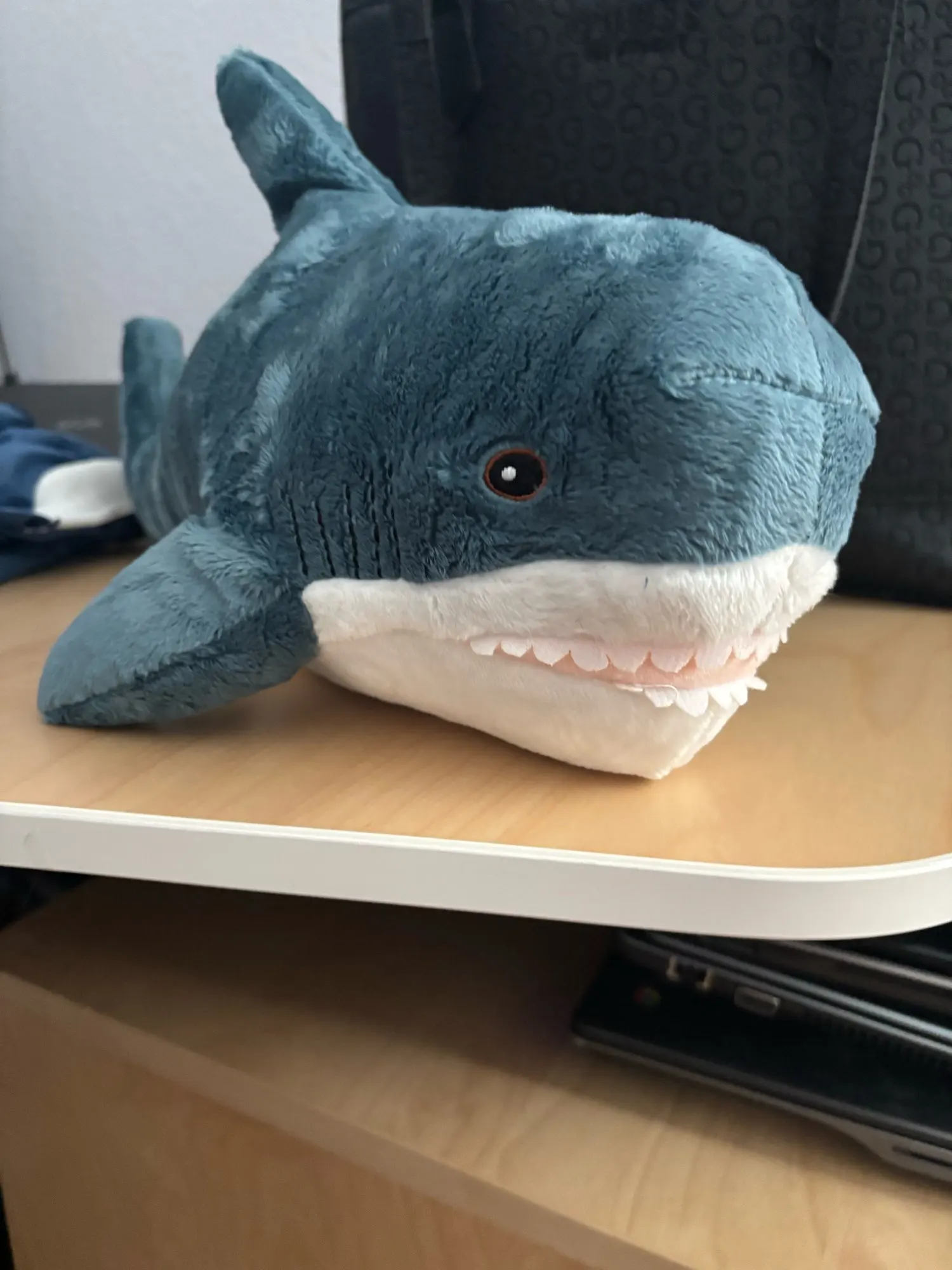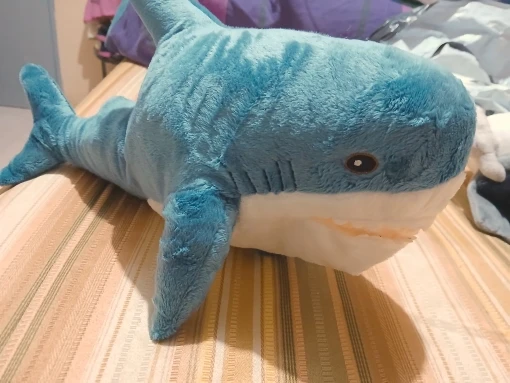 Amazing knock off of a certain shark, very stuffy and slightly bigger than the size i chose. Now my blue one has a girlfriend. Wonder what i should name her, hmmm…
