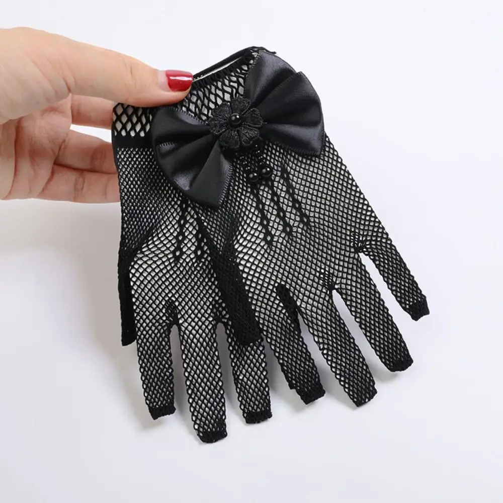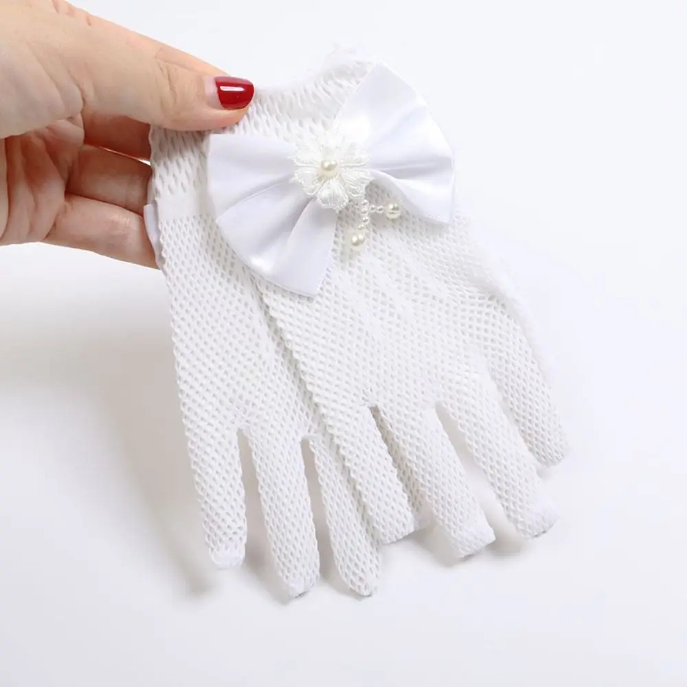 Short Children’s Wedding Gloves Bow Knot Thin Lace Mesh Gloves Etiquette Dress Gloves Holiday Princess Birthday Party Gloves