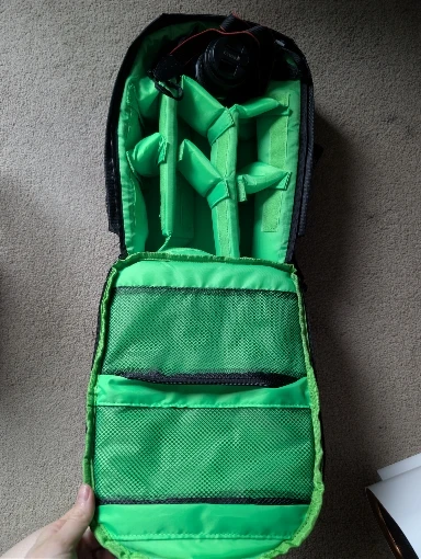 I loved the backpack. Very good material and well reinforced. Inside, there are removable dividers and some pockets.