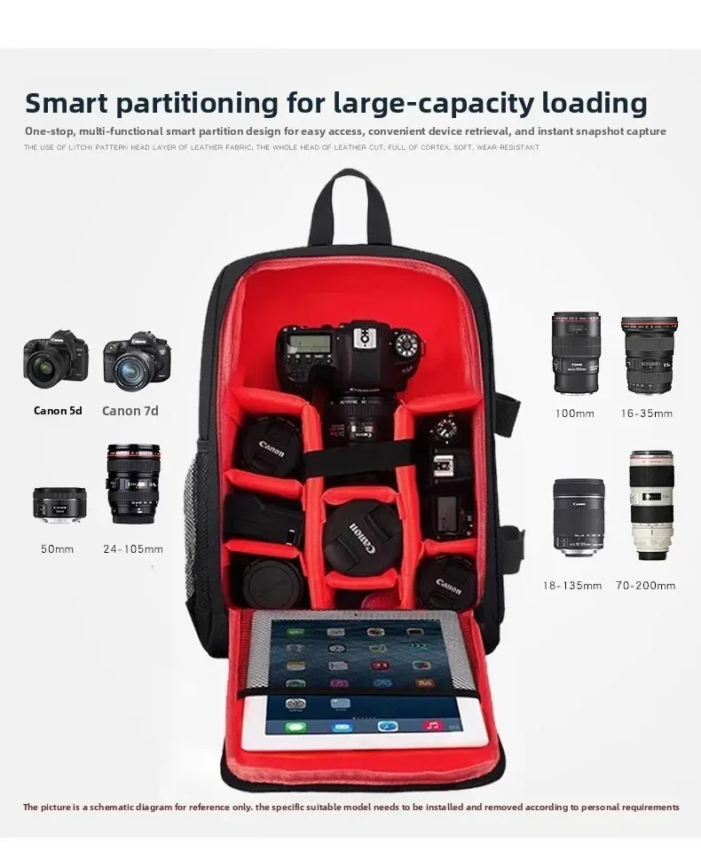 Shoulder camera bag backpack suitable for Canon, Nikon, Sony digital mirrorless camera bag, lightweight, professional, large cap