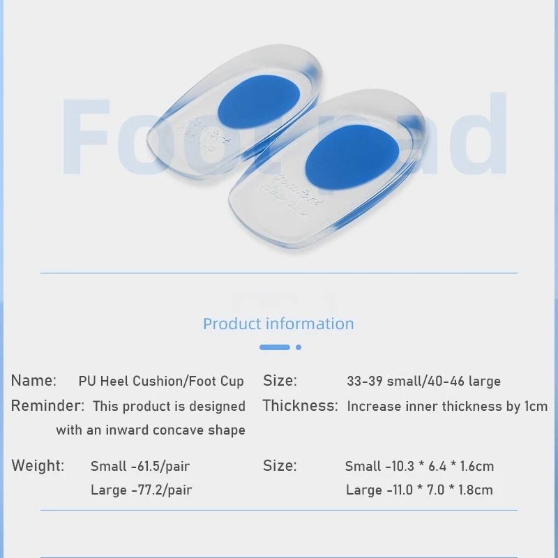 Silicone Gel Insoles Pain Heal Cushion Bone Spurs Pain Relief Heel Cushion Thickened Soft Half-Size Shoe Sole Insole Heel Pad