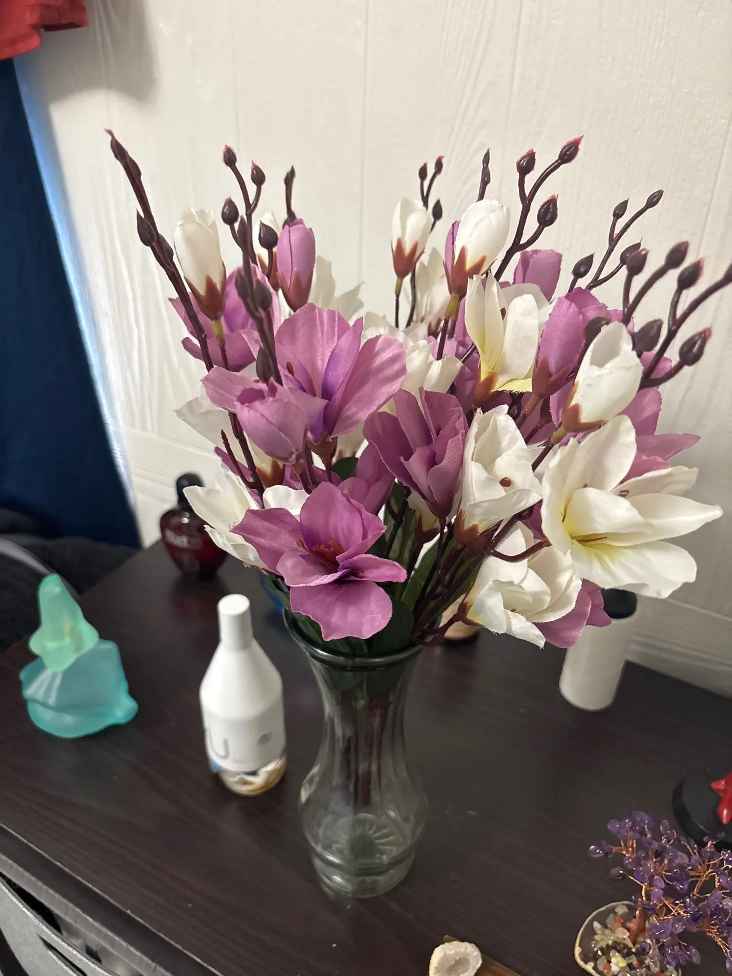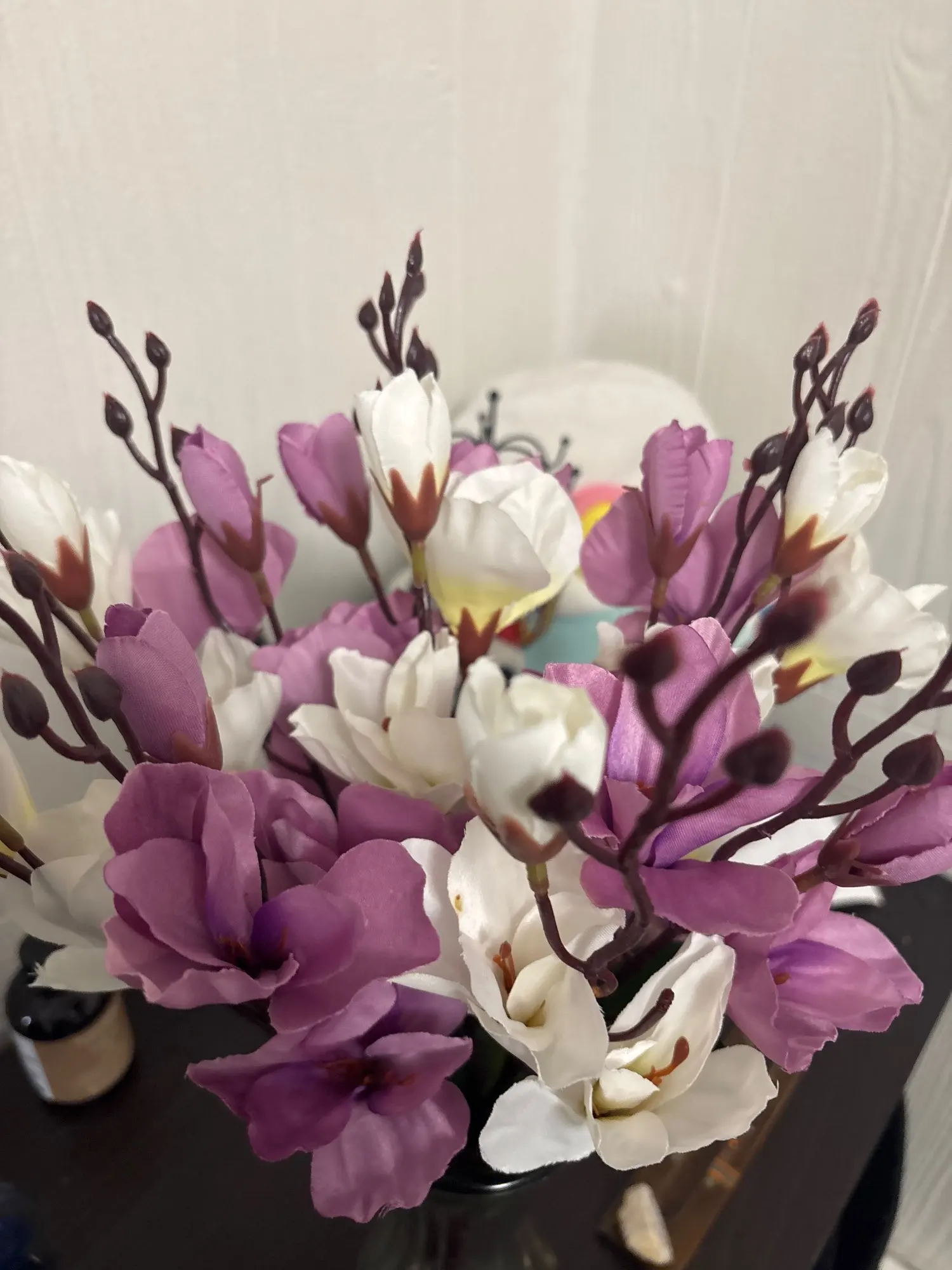 The truth is that it looks very nice combining 2 colors and the white and purple look super cool, I loved it. I got a centerpiece for very little money. Thank you.