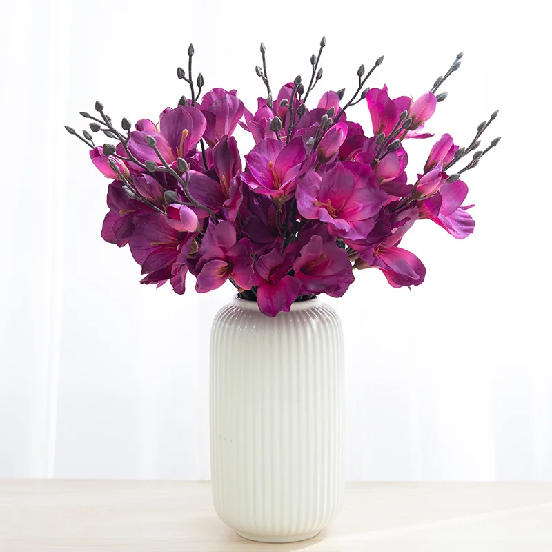 Silk Autumn Magnolia 5 Forks 20 Heads Artificial Flowers Gladiolus Home Decor Vase Floral Fake Christmas Wedding Accessories