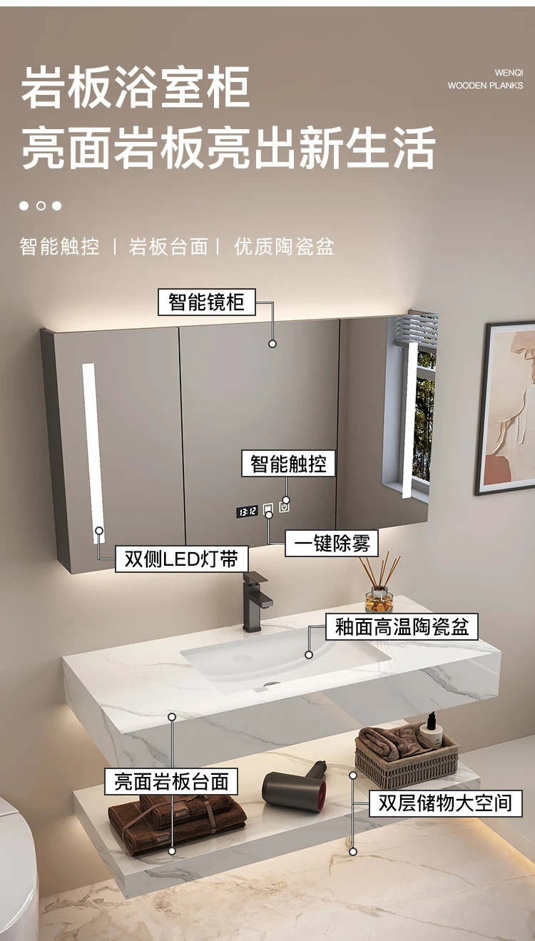 styleSimple and modern, Main cabinet + countertop + accessories + mirror cabinet