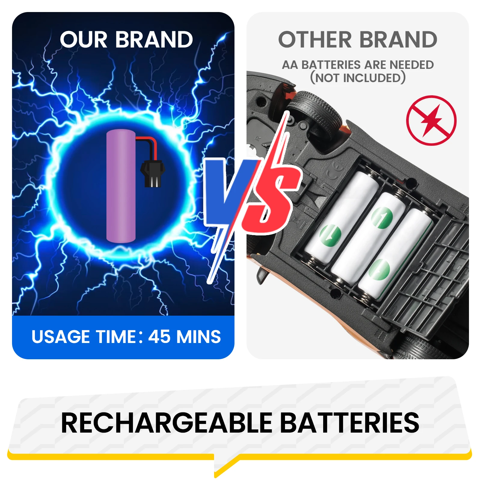 【Upgrade to Rechargeable Batteries】Up to 45mins of non-stop fun awaits with 1 powerful 800mAh rechargeable batteries. Effortless USB charging keeps you powered up with quick, safe recharging. Our device includes overcharge protection for worry-free charging. Elevate your experience with extended playtime and hassle-free power!