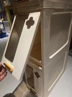 Hard plastic mobile storage. Decent quality for its cheaper price compared to similar products but still relative fragile so be careful with it. Instructions only in chinese so it took a little long to build than normal. And shipping is quite slow (1.5months to australia) as it’s considered a “bulky/heavy” item. Hard to tell in the photo but the unit is a creamy colour not white/off white.