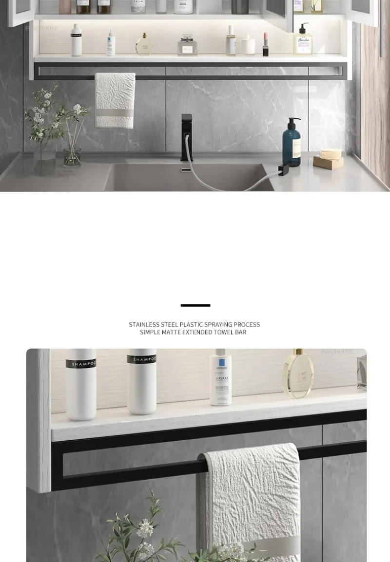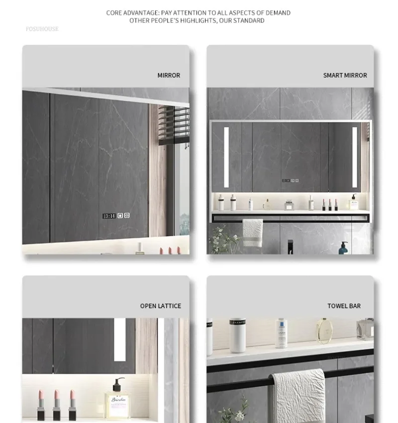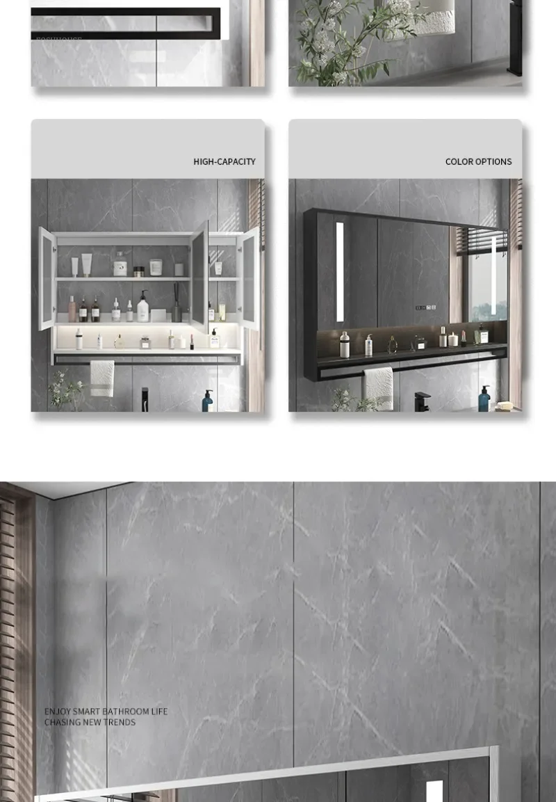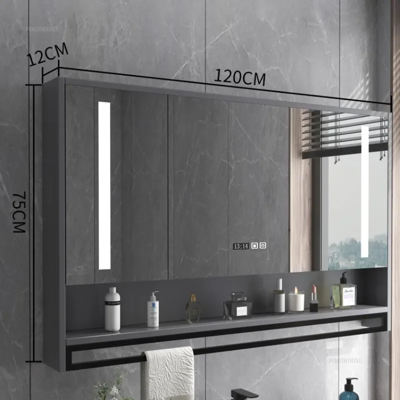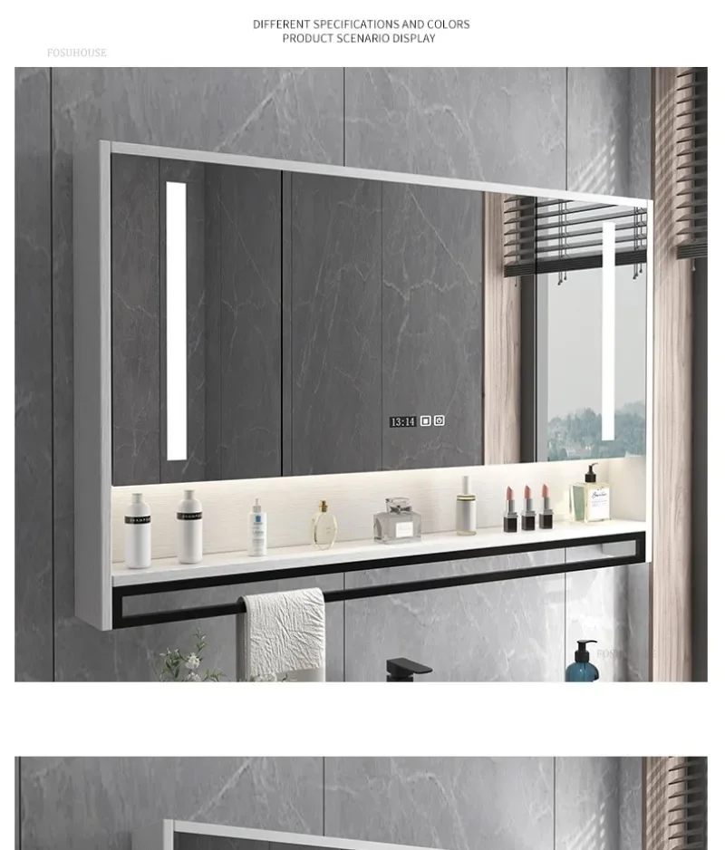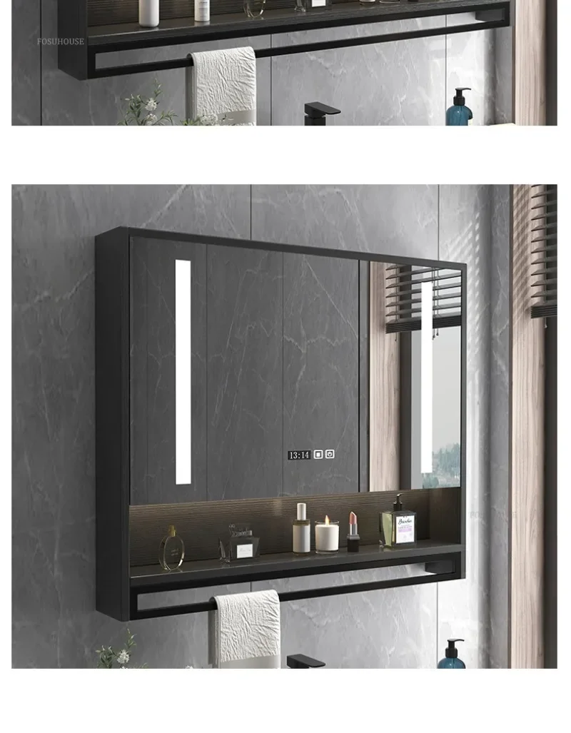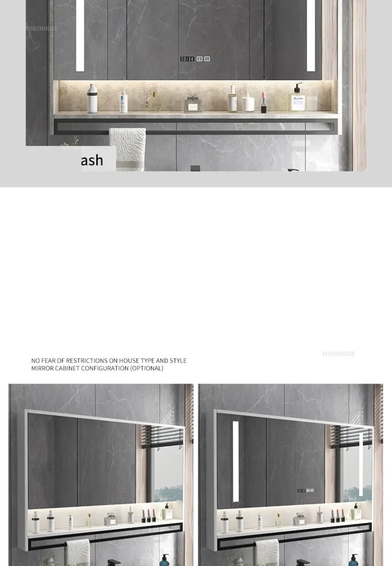 Smart Bathroom Mirror Cabinets Wall-mounted with Backlight Anti-fog Bathroom Furniture Mirror Storage Rack Integrated Cabinet