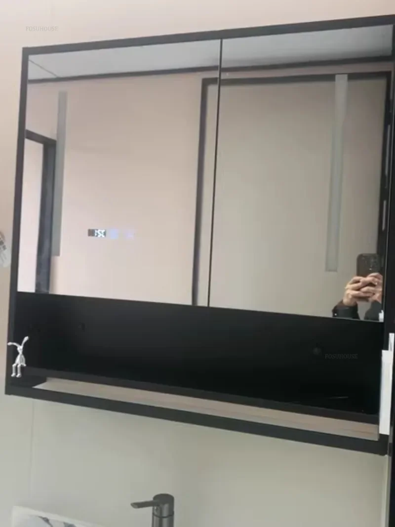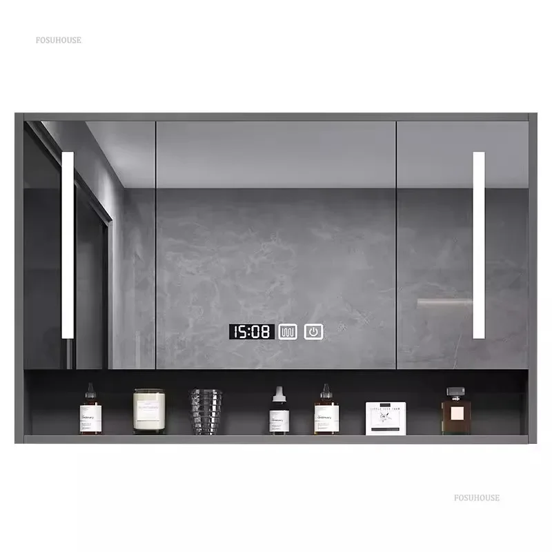 Smart Bathroom Mirror Cabinets Wall-mounted with Backlight Anti-fog Bathroom Furniture Mirror Storage Rack Integrated Cabinet