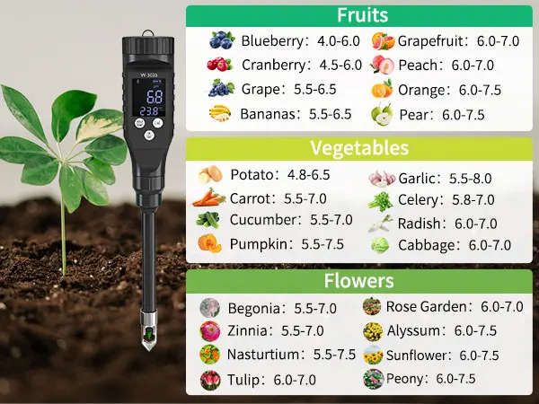 Waterproof: IP67What is your garden soil’s pH level? Every plant prefers a different level of acidity. Use this soil pH chart to find out which pH level is best for your garden plants. Then, learn how to adjust it accordingly!