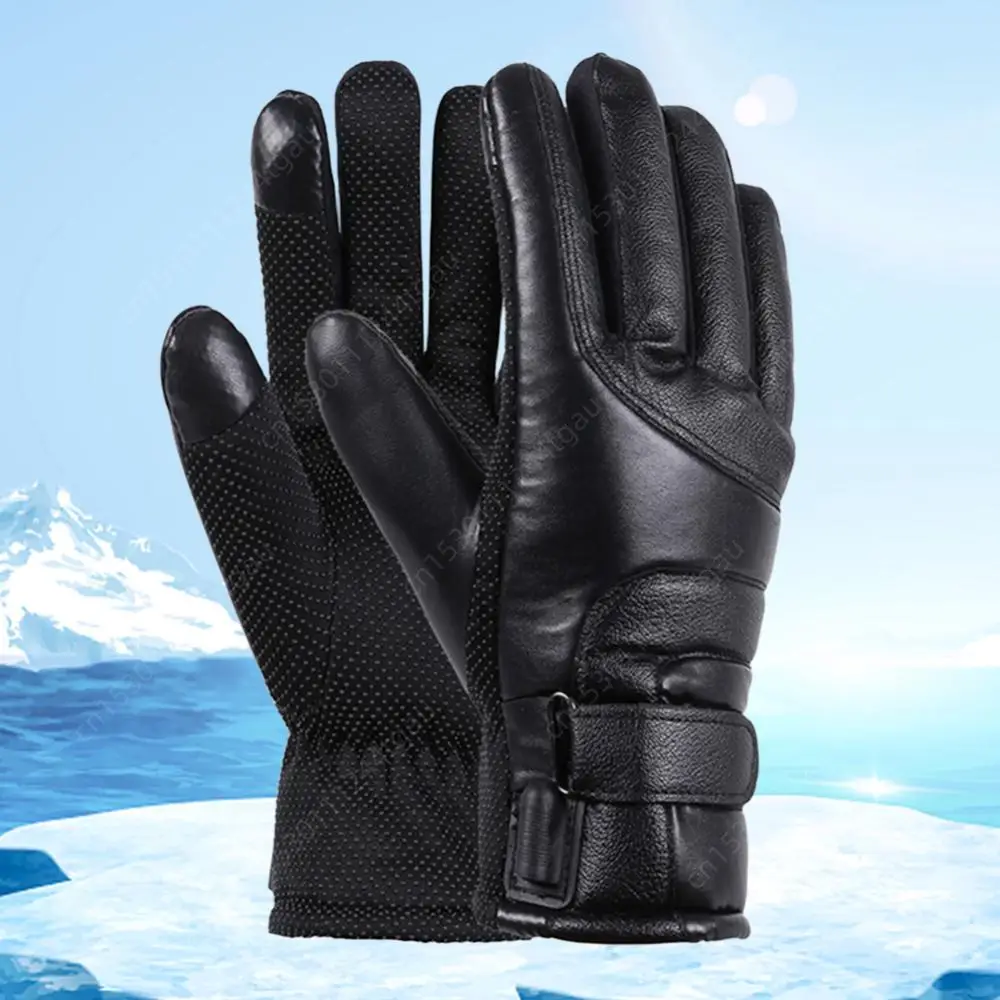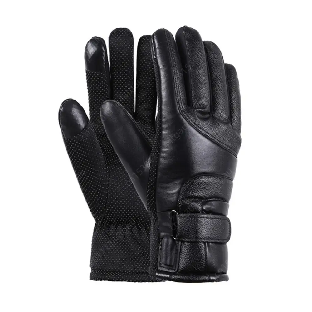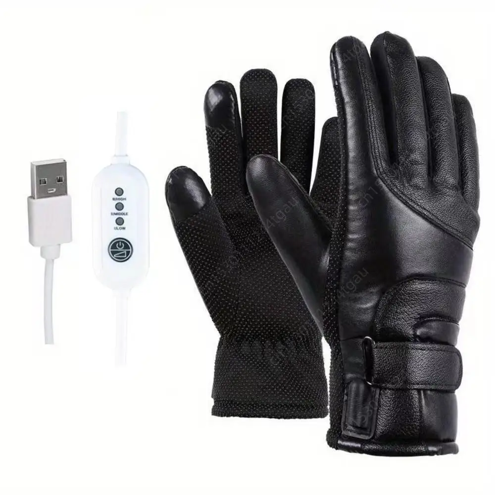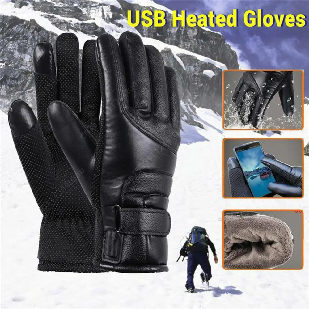 USB Winter Electric Warming Gloves Waterproof Leather Heating Gloves Soft Winter Outdoor Warm Gloves for Fishing Riding Cycling
