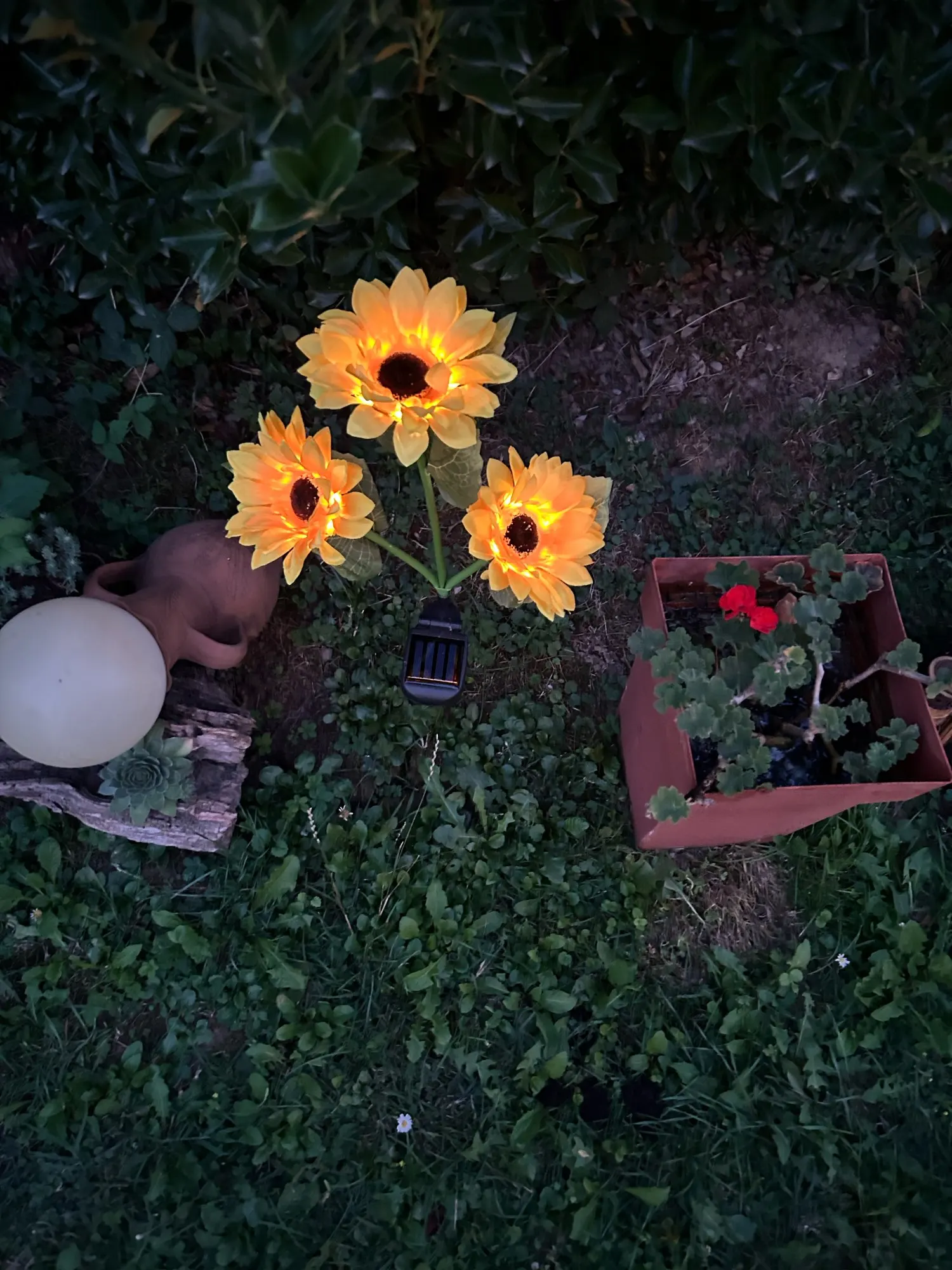 A very beautiful pot ornament. The stems and sunflowers light up.