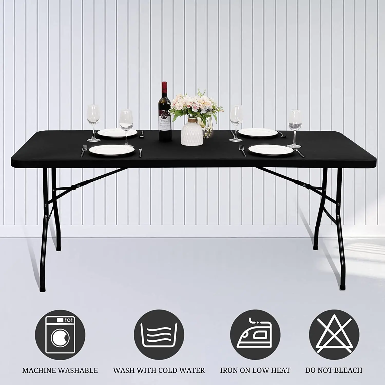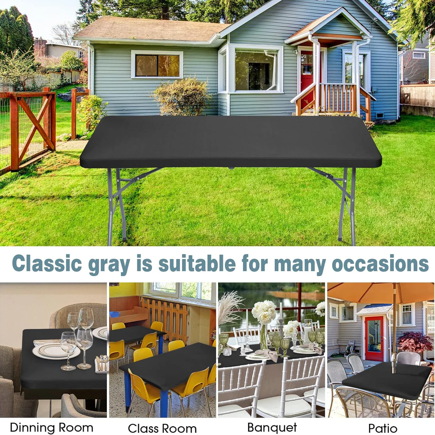 • Spandex Material :Crafted from 100% polyester, this tablecloth offers superior elasticity and stretch, ensuring a tight fit for any table size.