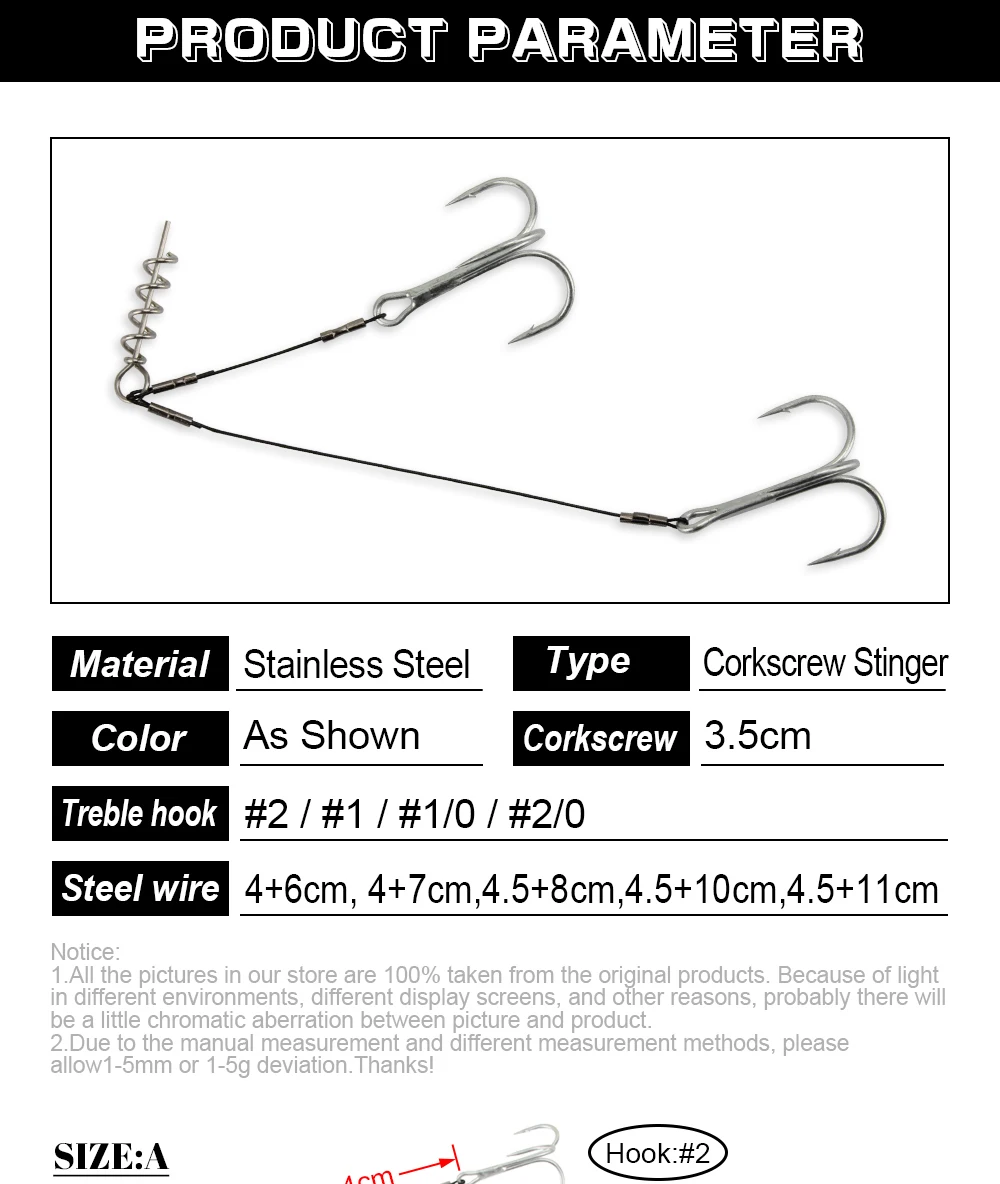 Spinpoler Corkscrew Stinger Rig hook double sharp treble pike Fishhook High-Carbon Steel for soft lure fishing equipment